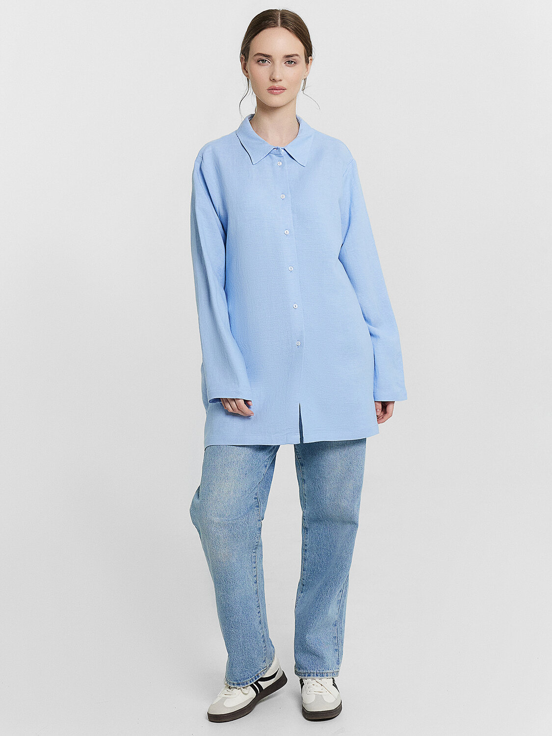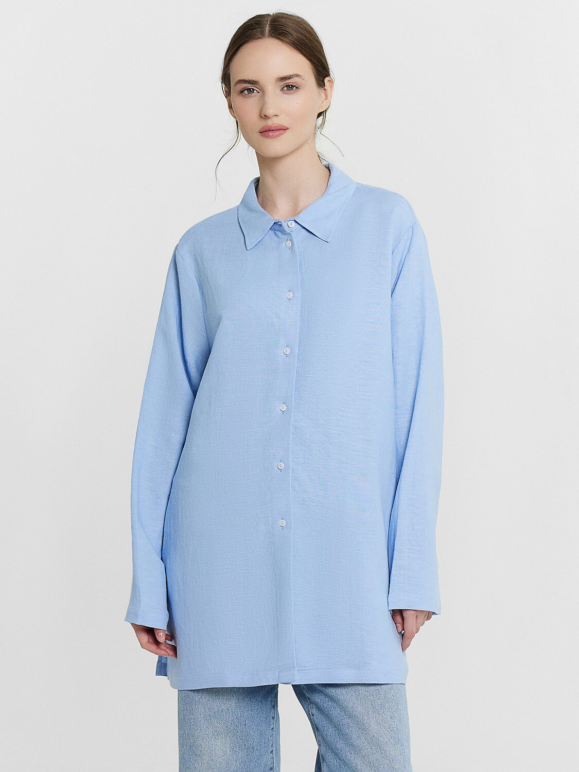 Женская рубашка свободного силуэта станет стильным и удобным элементом вашего гардероба. Изготовленная из натурального сочетания льна и вискозы, она отражает все преимущества этих материалов. Лён обеспечивает отличную воздухопроницаемость и комфорт в жаркую погоду, а вискоза добавляет мягкость и приятные ощущения при носке. Модель имеет классический воротник и длинные рукава с манжетами, что придает ей элегантный и утонченный вид. Спущенная линия плеча и углубленная пройма создают современный и расслабленный силуэт, который обеспечивает свободу движений и комфорт. Застежка на пуговицах добавляет удобство и позволяет легко надевать и снимать рубашку. Этот универсальный элемент гардероба идеально подходит как для повседневного ношения, так и для создания более формальных образов.