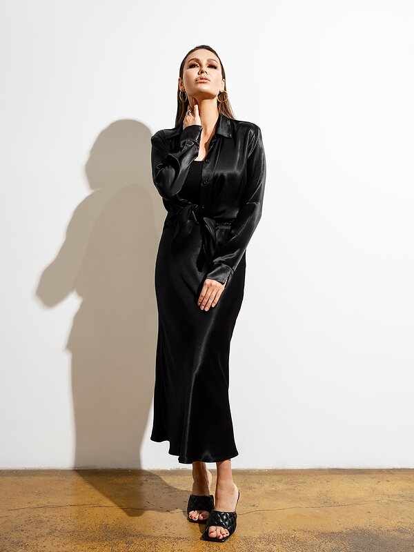Блузка женская прямого силуэта из сатиновой ткани. Горловина круглой формы, в горловину втачан стояче-отложной воротник. Центральная застежка на пуговицы.