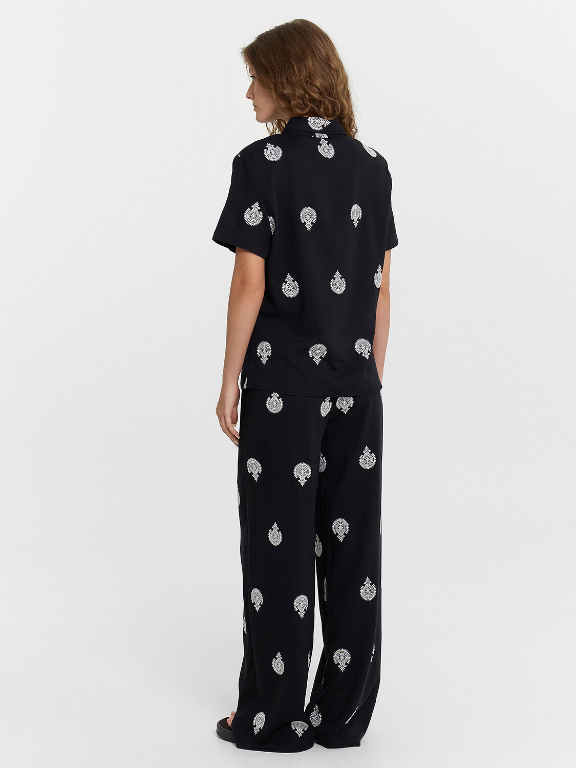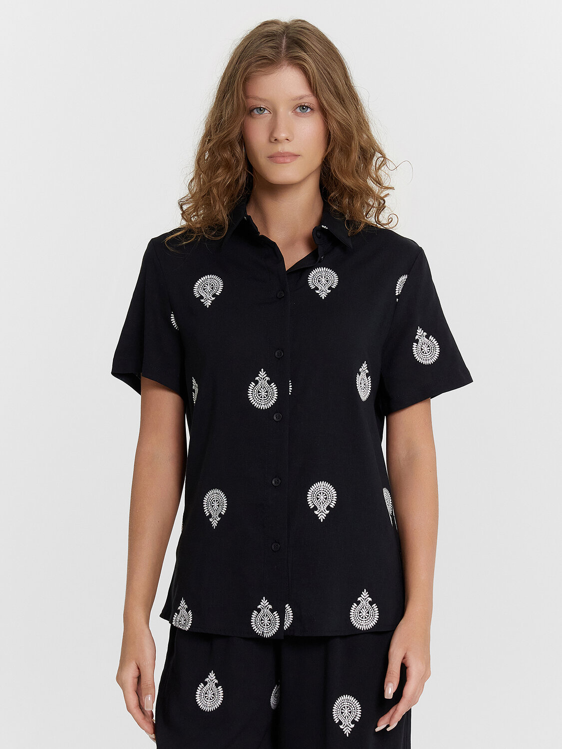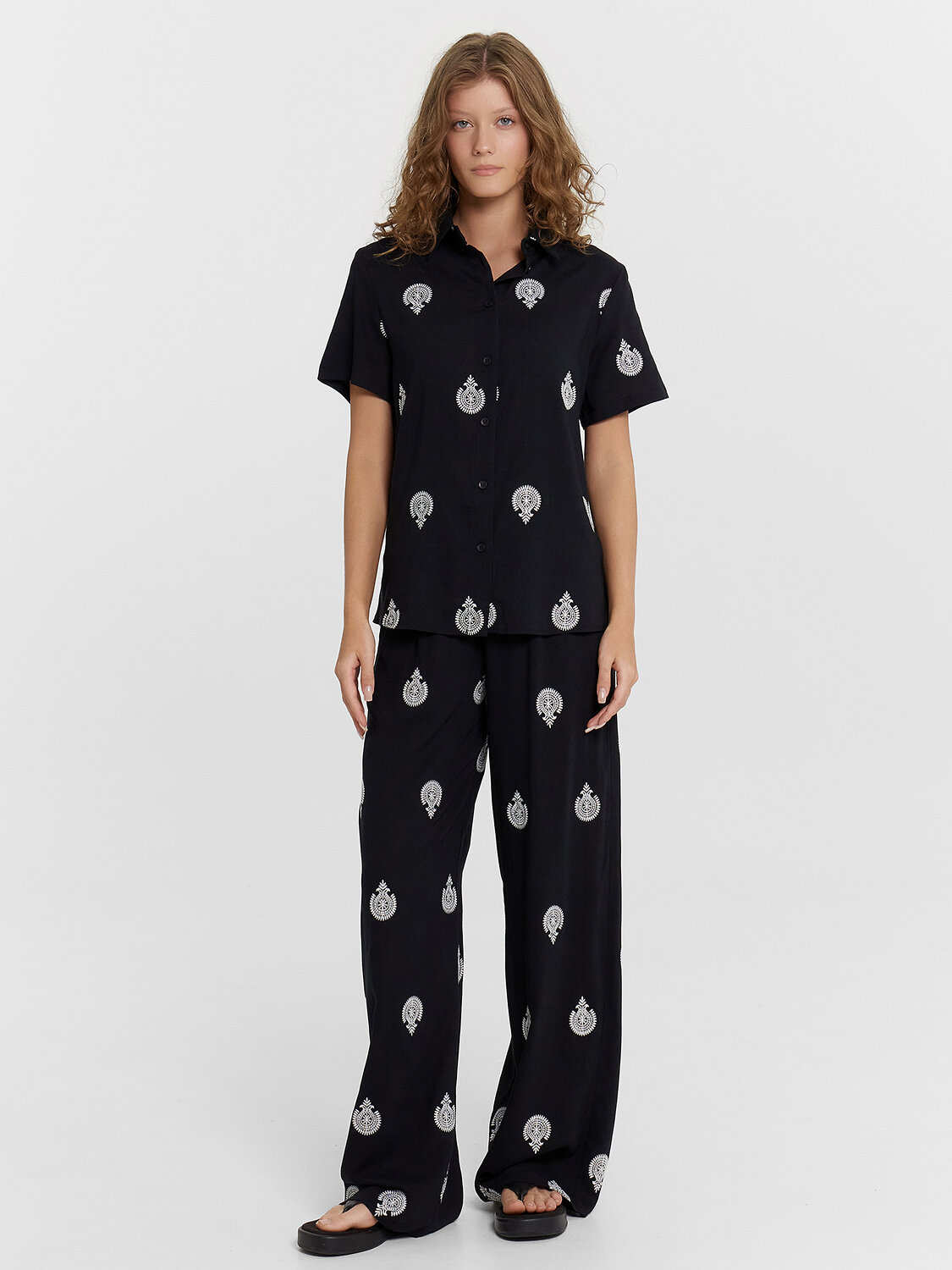 Женский комплект создан для максимального комфорта в повседневной носке. Натуральные материалы — вискоза и лен — обеспечивают хорошую воздухопроницаемость, приятны к телу и дарят легкость даже в жаркую погоду. Они устойчивы к износу, легко стираются и сохраняют аккуратный вид длительное время. Практичный дизайн делает комплект удобным в любых ситуациях. Свободные прямые брюки со средней посадкой и эластичным поясом обеспечивают комфортную посадку, а боковые карманы добавляют функциональность. Укороченная рубашка полуприлегающего силуэта с застежкой на пуговицы подходит как для повседневных образов, так и для более стильных сочетаний. Этот комплект — идеальный вариант для тех, кто ценит удобство, качество и натуральные материалы.