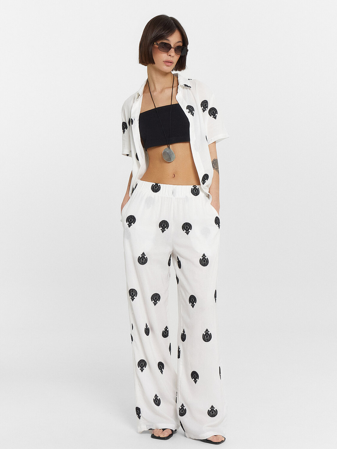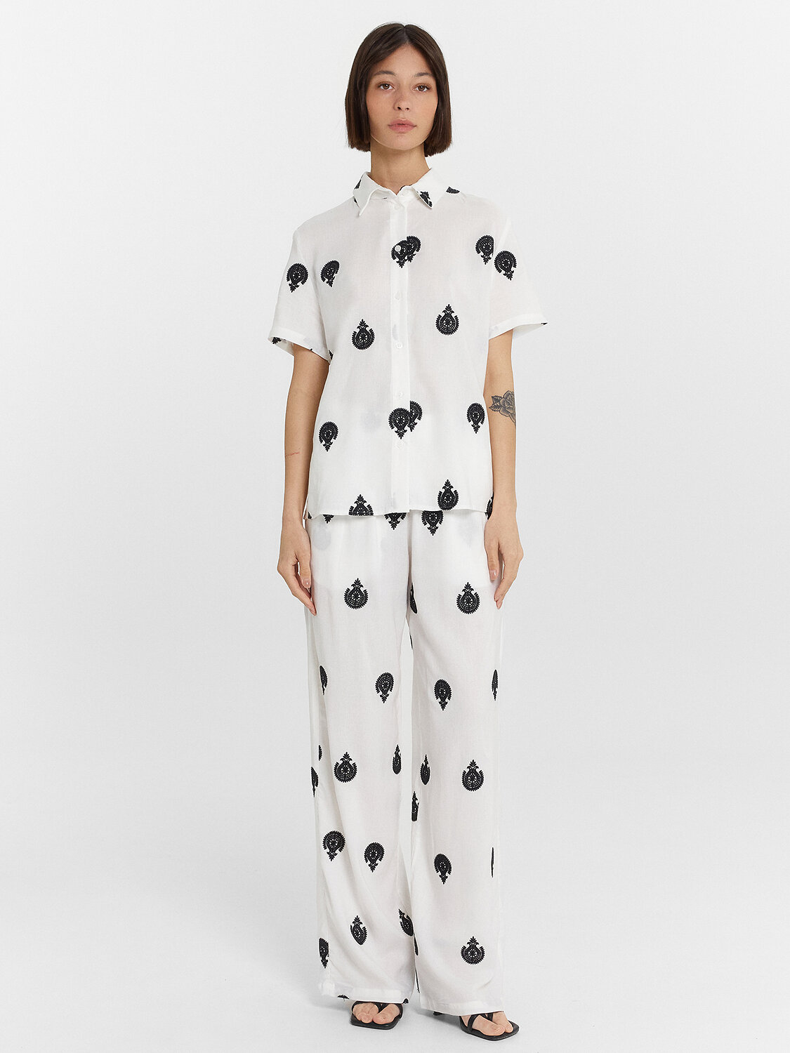 Женский комплект создан для максимального комфорта в повседневной носке. Натуральные материалы — вискоза и лен — обеспечивают хорошую воздухопроницаемость, приятны к телу и дарят легкость даже в жаркую погоду. Они устойчивы к износу, легко стираются и сохраняют аккуратный вид длительное время. Практичный дизайн делает комплект удобным в любых ситуациях. Свободные прямые брюки со средней посадкой и эластичным поясом обеспечивают комфортную посадку, а боковые карманы добавляют функциональность. Укороченная рубашка полуприлегающего силуэта с застежкой на пуговицы подходит как для повседневных образов, так и для более стильных сочетаний. Этот комплект — идеальный вариант для тех, кто ценит удобство, качество и натуральные материалы.
