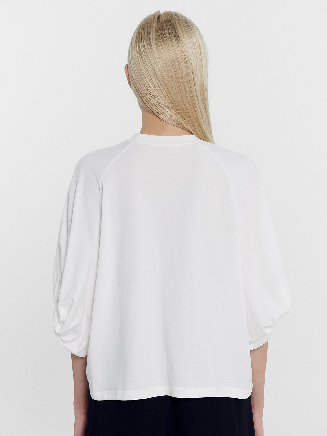 Плечо сильно спущено. Передняя часть рукава втачная, задняя часть рукава реглан.
