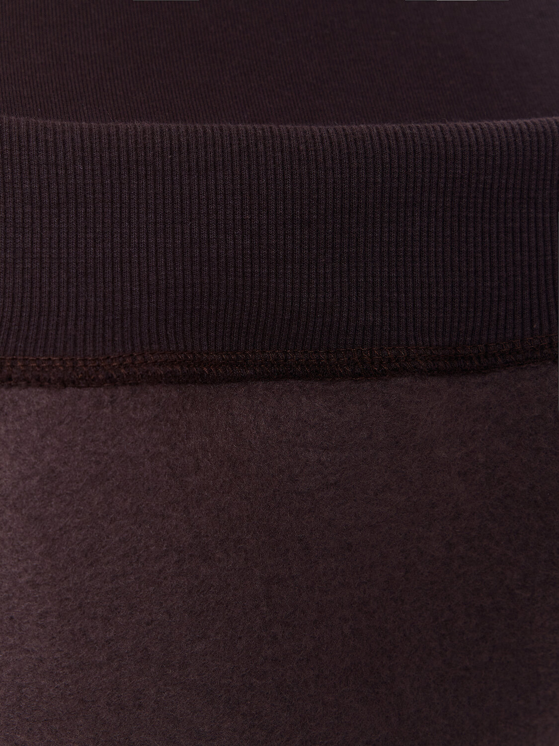 Классический круглый вырез горловины и широкий пояс из рибаны по низу добавляют модели лаконичность и завершенность. Универсальный коричневый оттенок легко сочетается с джинсами, леггинсами или юбками, создавая образы для прогулок, встреч с друзьями или отдыха дома.