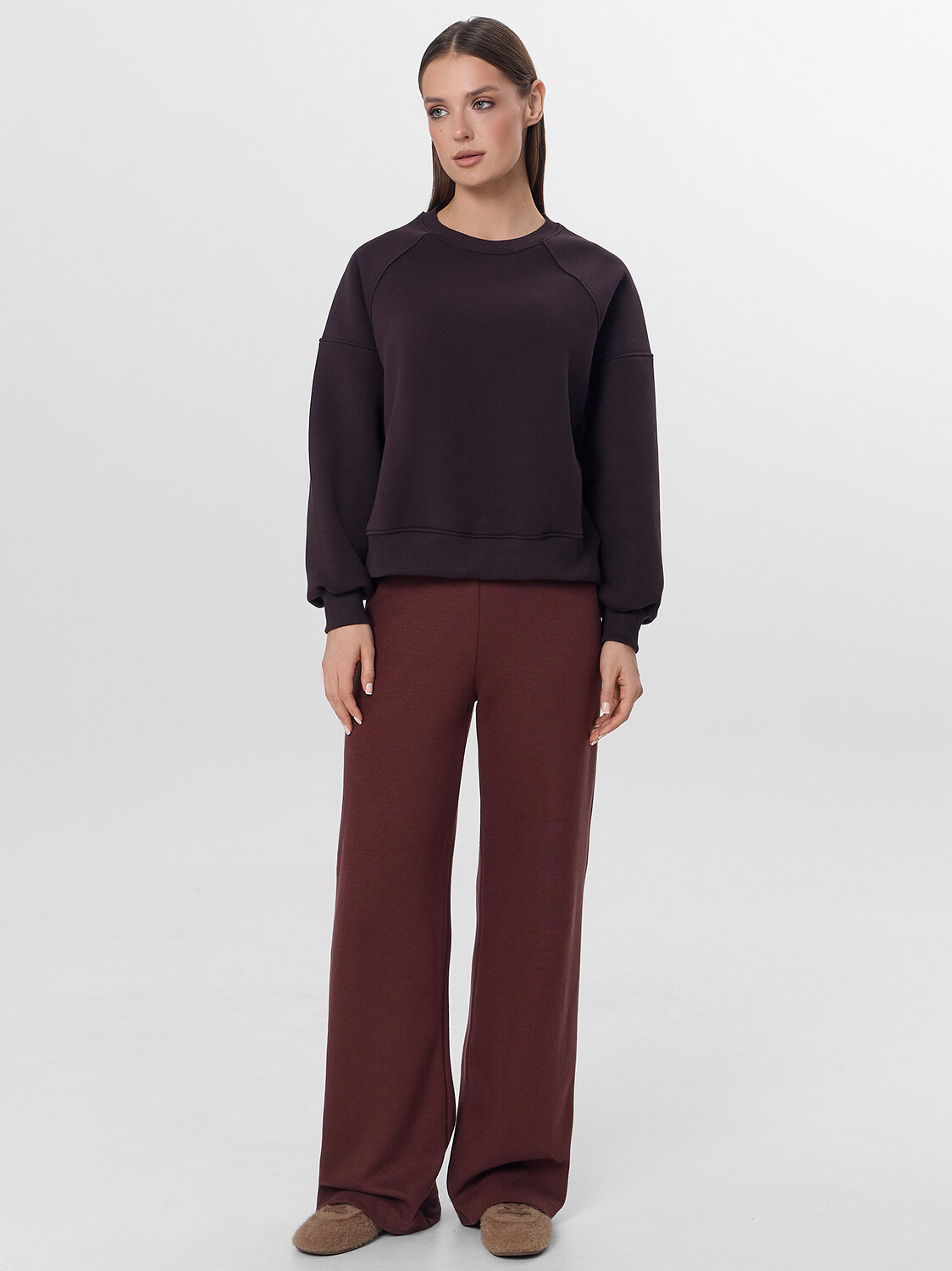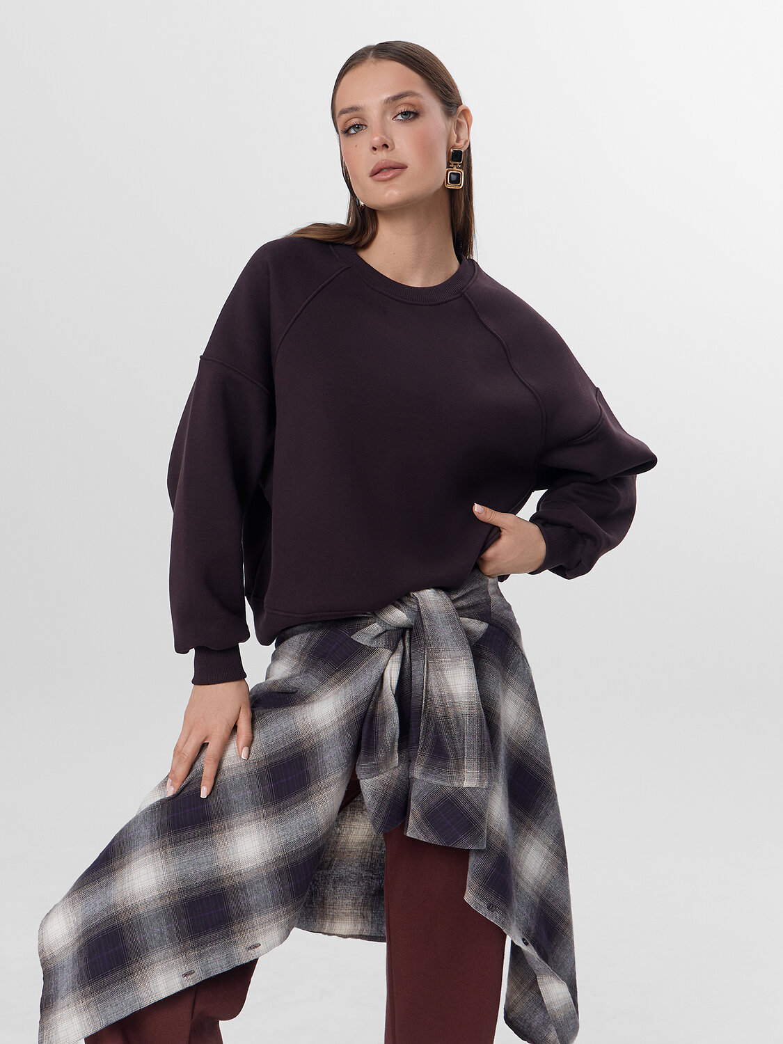 Коричневый свитшот для женщин — это трендовая модель для тех, кто ценит уют и современный стиль. Объемный силуэт со спущенной линией плеча и рукавами реглан обеспечивает максимальную свободу движений и создает расслабленный вид.