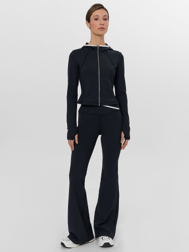 Круглая горловина из рибаны плотно прилегает к шее, сохраняя форму даже после множества стирок. Спущенное плечо обеспечивает свободу движений, а рукава рубашечного кроя с широкими манжетами из рибаны дополняют расслабленный силуэт. Пояс из той же рибаны мягко фиксирует изделие, предотвращая задирание.