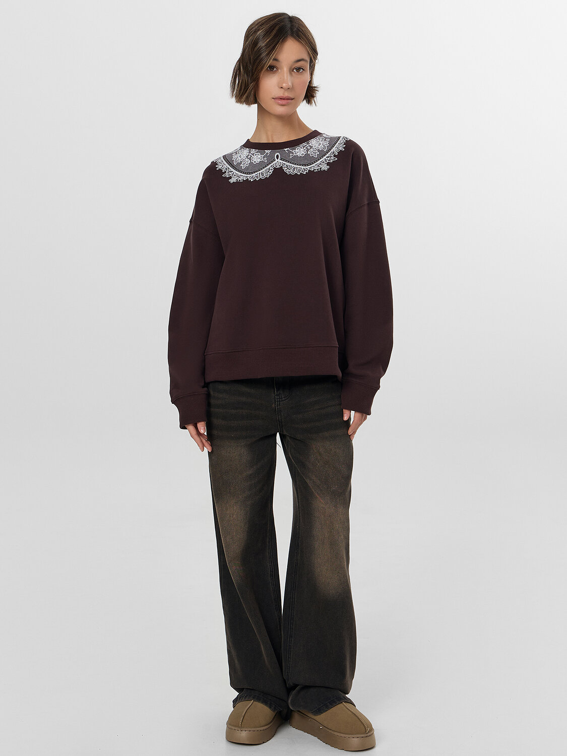 Свитшот выполнен из мягкого трикотажа, который сохраняет тепло, позволяет коже дышать и не теряет форму. Он идеален для прогулок, встреч с друзьями или отдыха — легко сочетается с джинсами, юбками или леггинсами.
