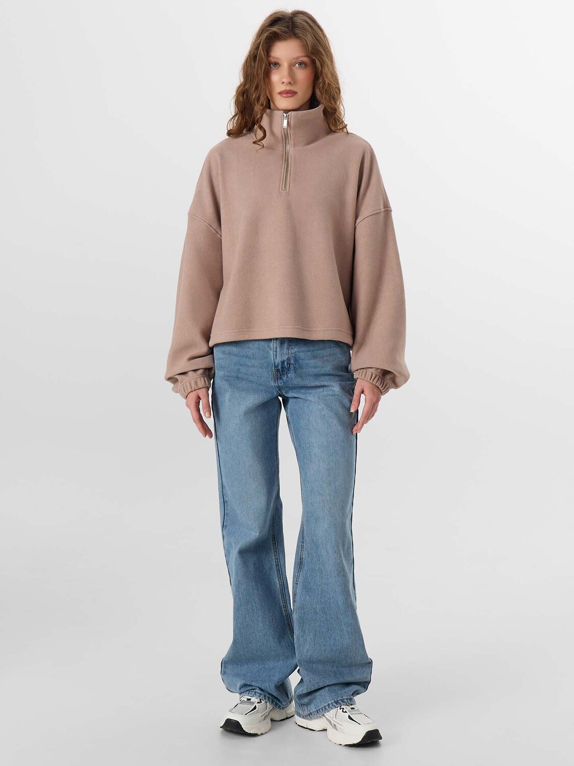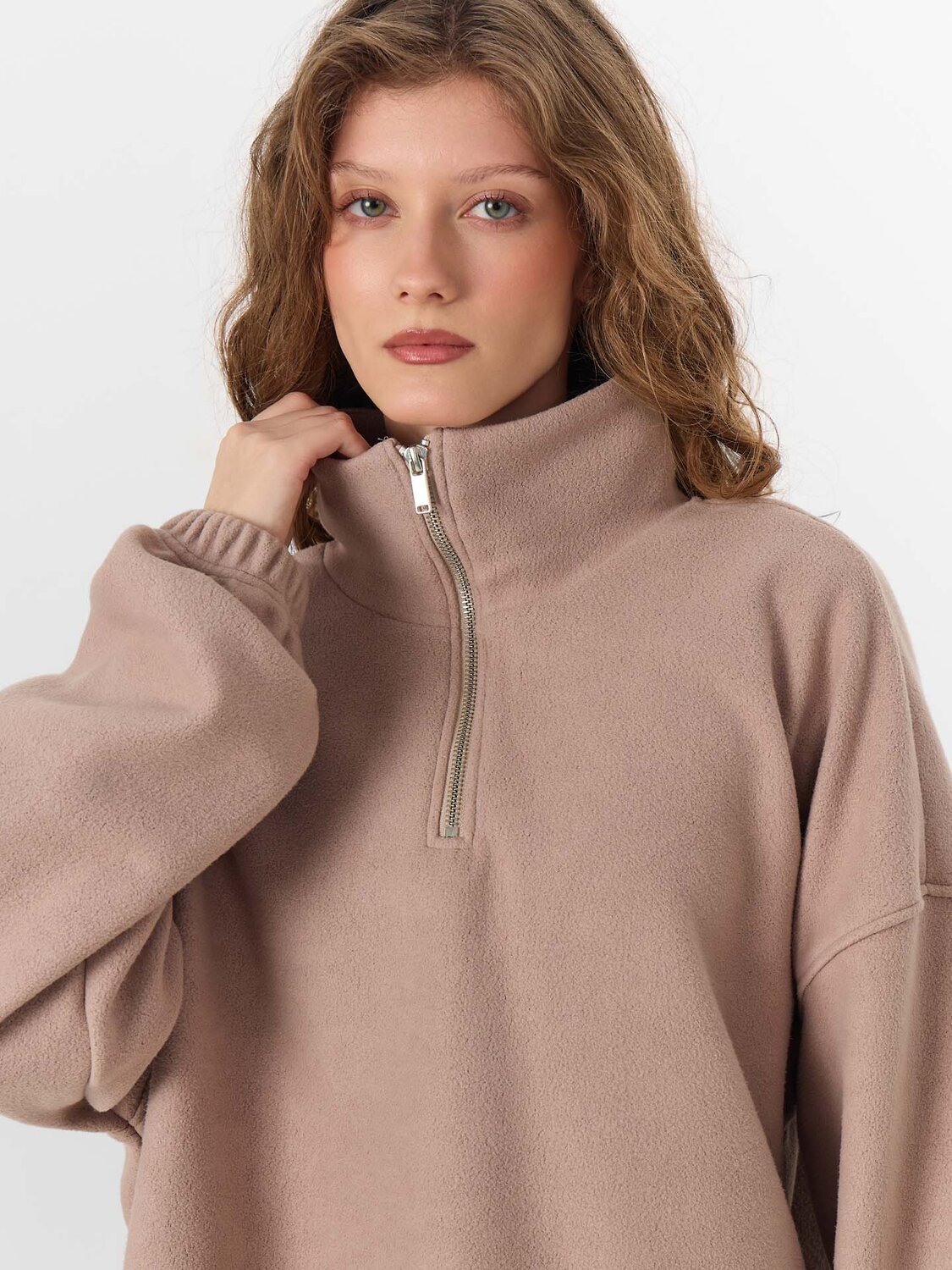 Свитшот из мягкого флиса подарит ощущение тепла и уюта в прохладные дни. Свободный силуэт со спущенным плечом и углубленной проймой обеспечивает комфорт и полную свободу движений.