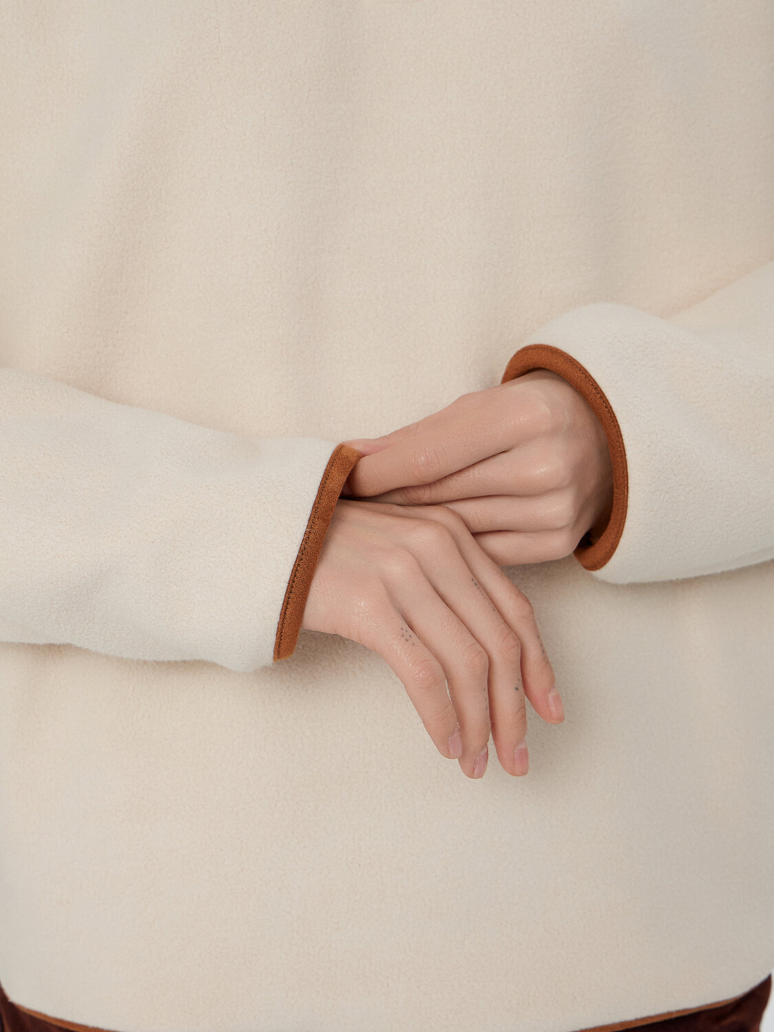 Длинные рукава и боковые карманы с мягкой подкладкой добавляют практичности. Флисовый материал сохраняет тепло, позволяя коже дышать, и быстро сохнет после стирки. Толстовка подойдет для прогулок, отдыха на природе или домашних дел — в ней вы будете чувствовать себя комфортно в прохладную погоду.