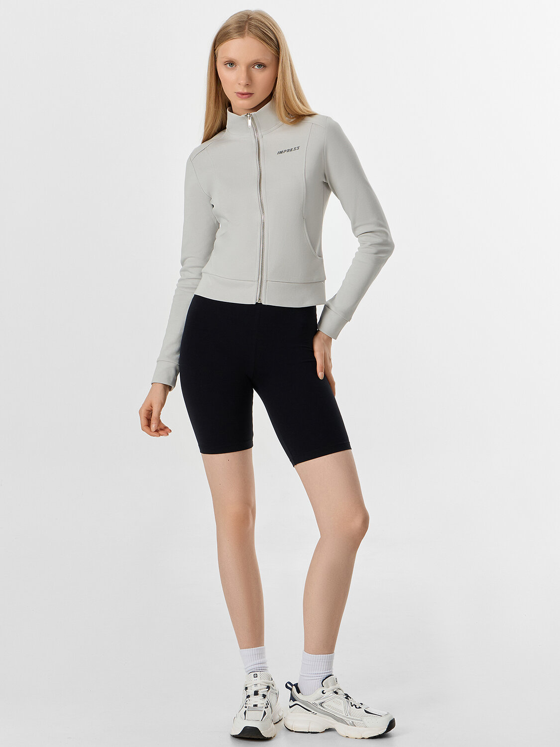 Женская толстовка прилегающего силуэта в насыщенном металлическом сером цвете с мотивирующей надписью «Впечатляй» создана для тех, кто ценит современный крой и внимание к деталям. Модель оснащена удобной застежкой-молнией по центру, которая позволяет легко регулировать степень открытости и создавать многослойные образы.