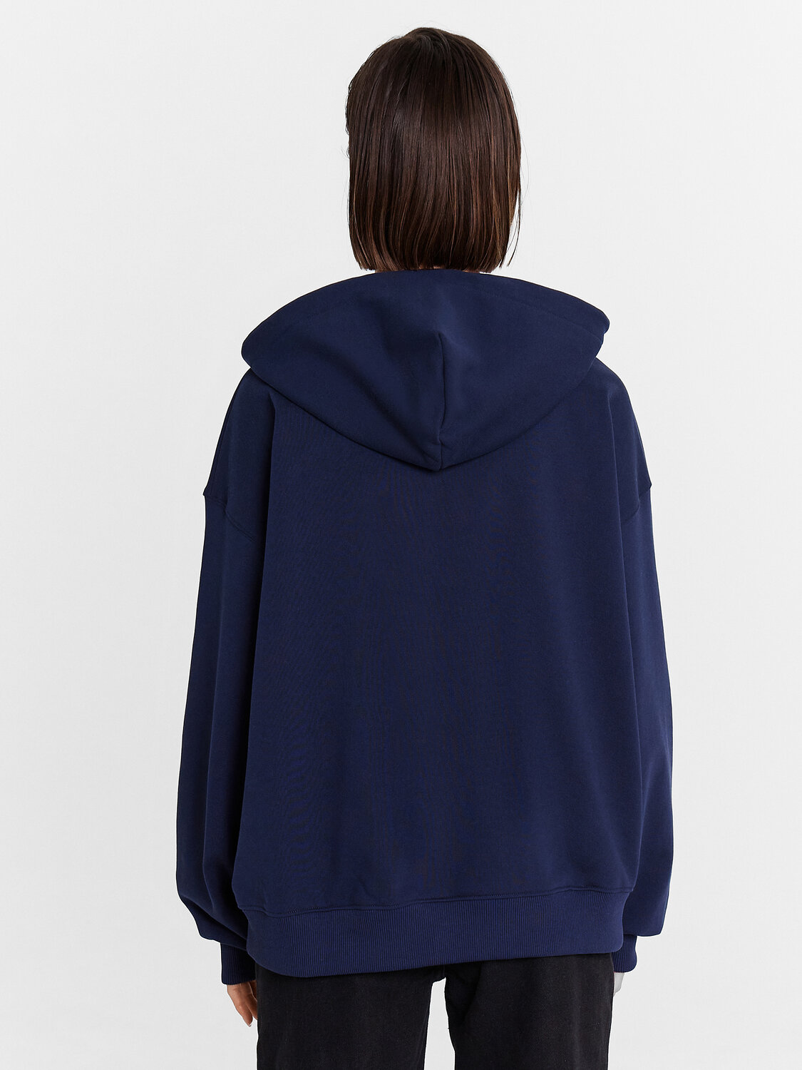 Толстовка прямая свободная, оверсайз. Горловина округлой формы с капюшоном. Капюшон цельнокроеный с подкладкой. На внешней стороне пробиты петли и втянут шнур (8EKXWC-1 8мм с эглетами). Шов втачивания