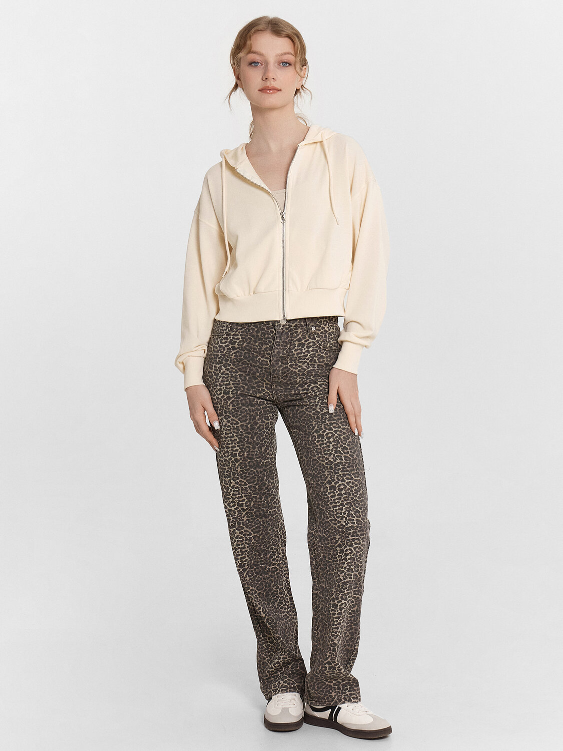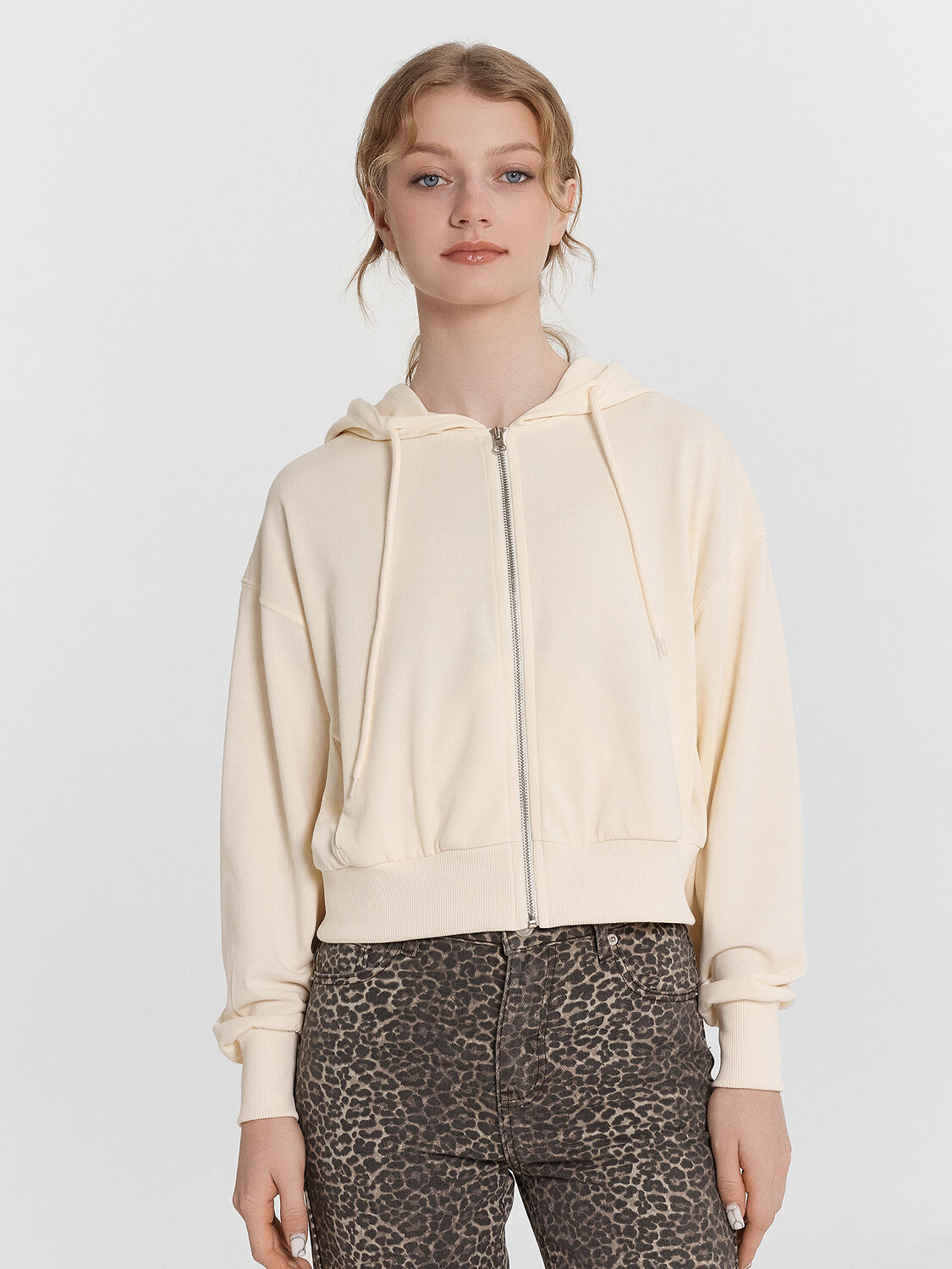 Эта укороченная женская толстовка станет стильным элементом вашего гардероба. Модель свободного силуэта с капюшоном на кулиске создаст современный и непринуждённый образ. Центральная застежка на молнию обеспечивает практичность и удобство, а длинные рукава с манжетами из рибаны добавляют уют. Спущенное плечо и боковые карманы добавляют функциональности и стиля. Изделие выполнено из футера без подчеса, что обеспечивает мягкость и комфорт при носке. Эта толстовка легко сочетается с различными элементами гардероба, создавая стильные и удобные образы на каждый день.