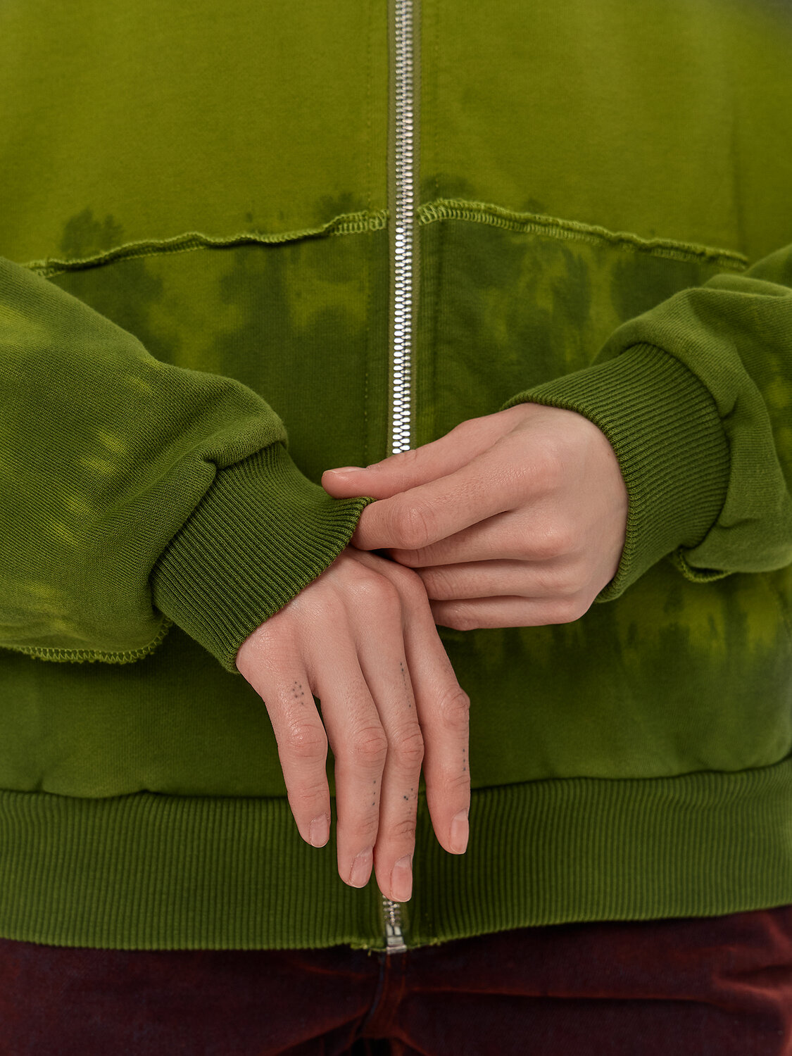 Мягкие манжеты из рибаны по низу изделия и на рукавах обеспечивают аккуратную посадку. Центральная застежка-молния и накладные карманы добавляют практичности в повседневной носке. Особый шарм толстовке придают аккуратные швы, которые подчеркивают современный дизайн.