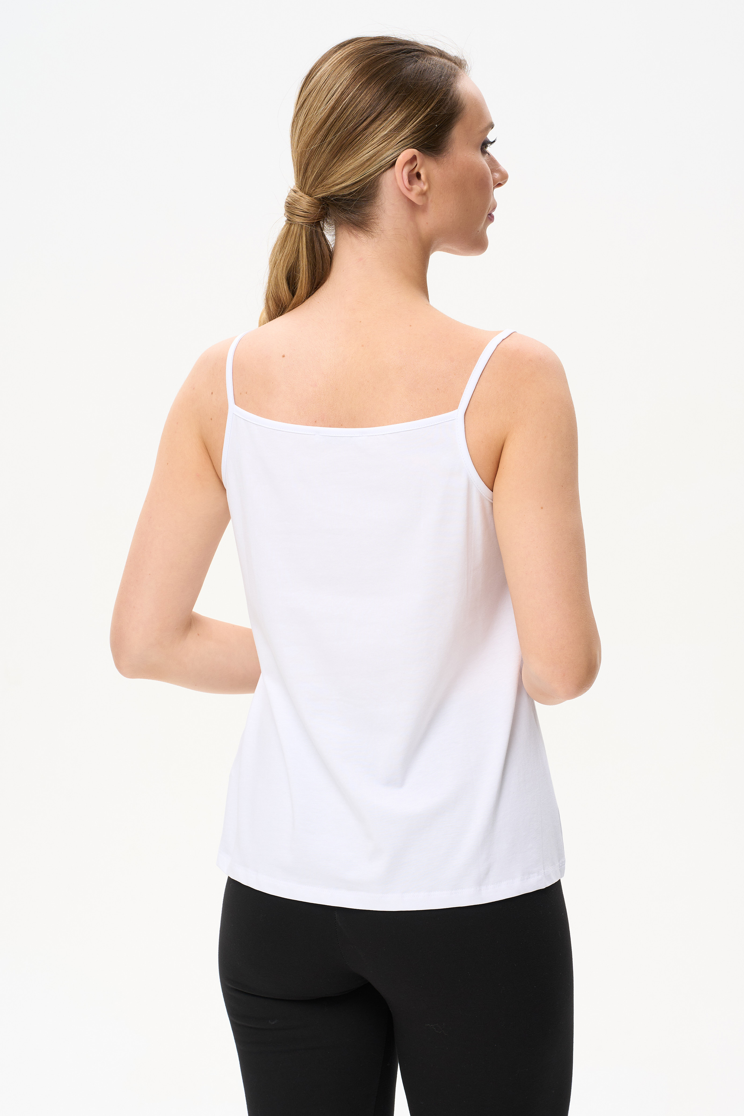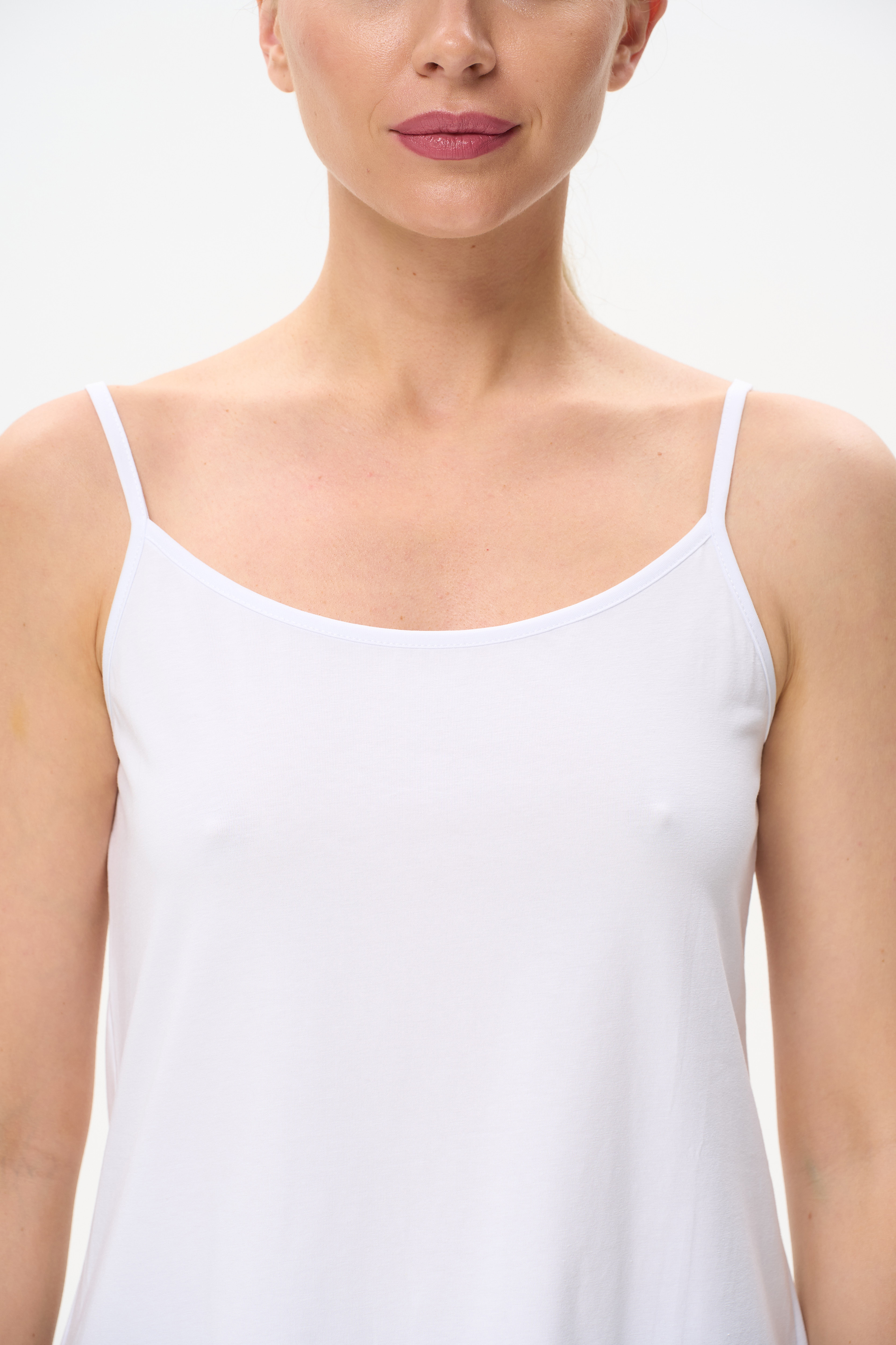 Майка на тонких бретелях из хлопкового трикотажного полотна с эластаном. Рост модели на фото 177см.