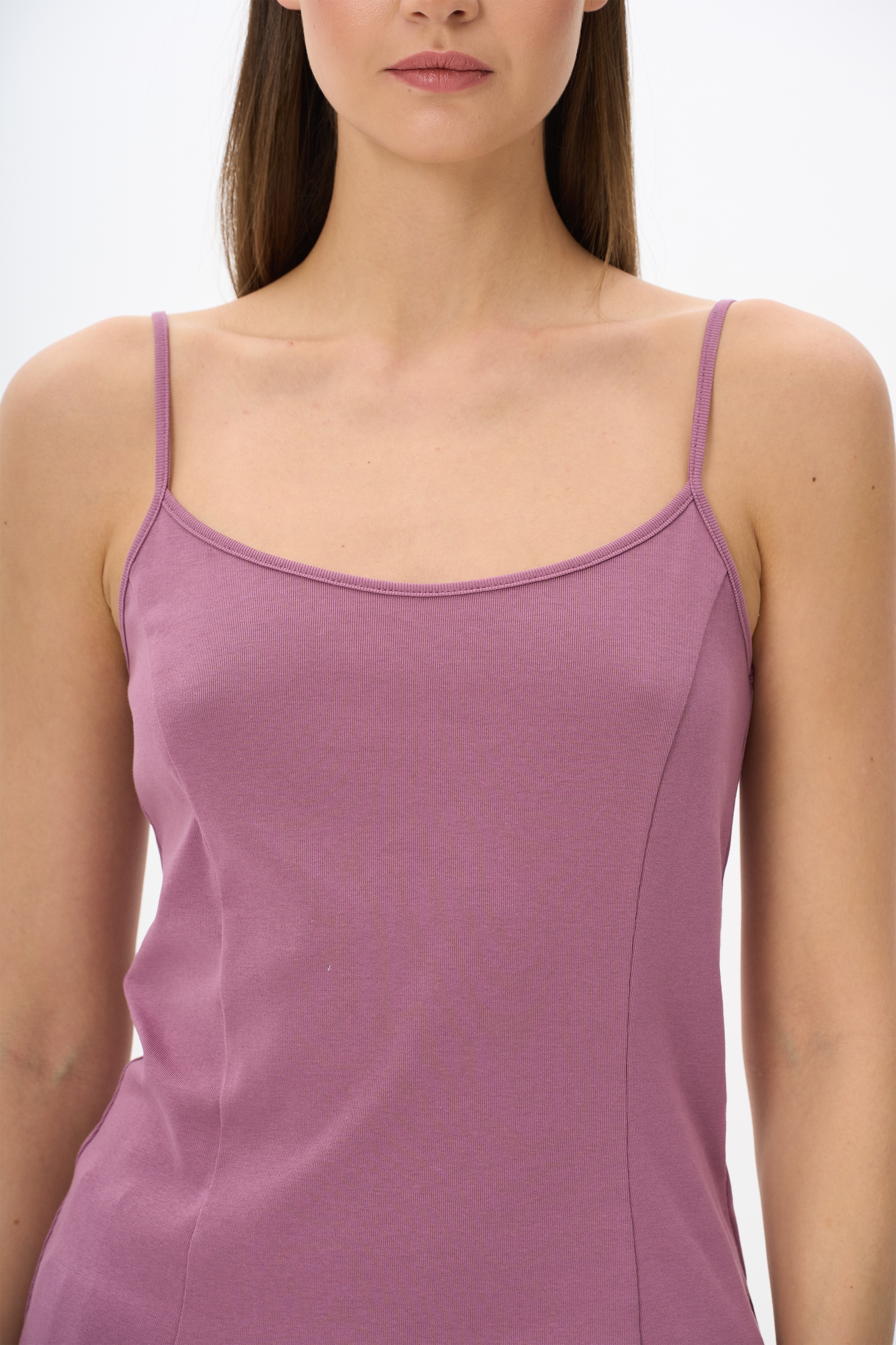 Майка на тонких бретелях из хлопкового трикотажного полотна - рибана. Рост модели на фото 177см.