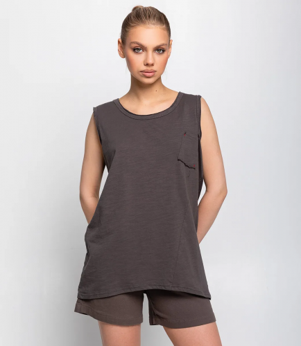 Майка является базовым элементом гардероба на каждый день. Данная модель благодаря высококачественному материалу приятна к телу и удобна в носке. Рост модели 164, 83-61-89.