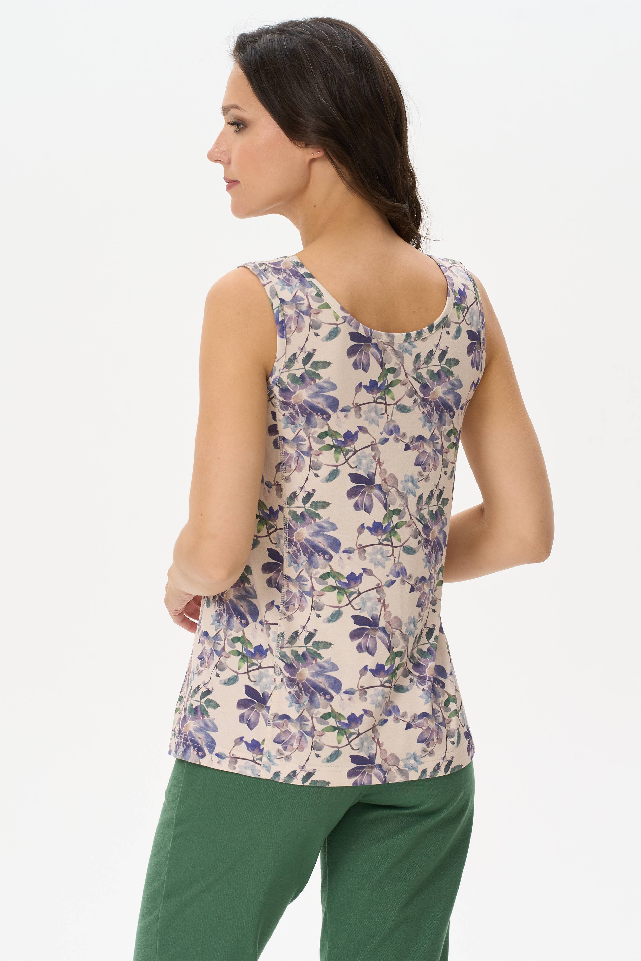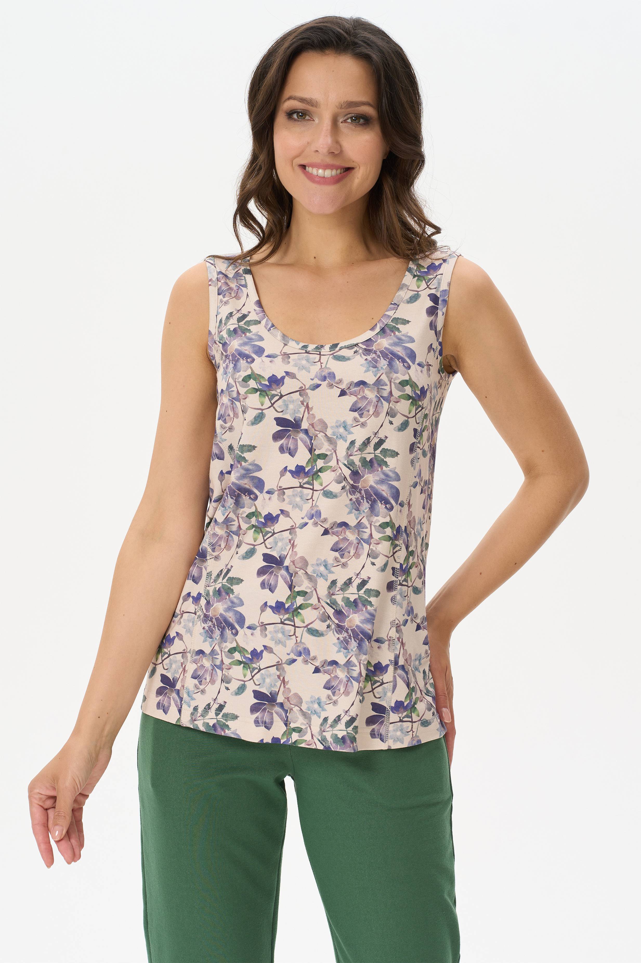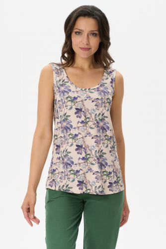 Комфортная майка из вискозного трикотажного полотна с эластаном. Круглый вырез горловины и проймы окантованы, рельефные швы. Рост модели на фото 170