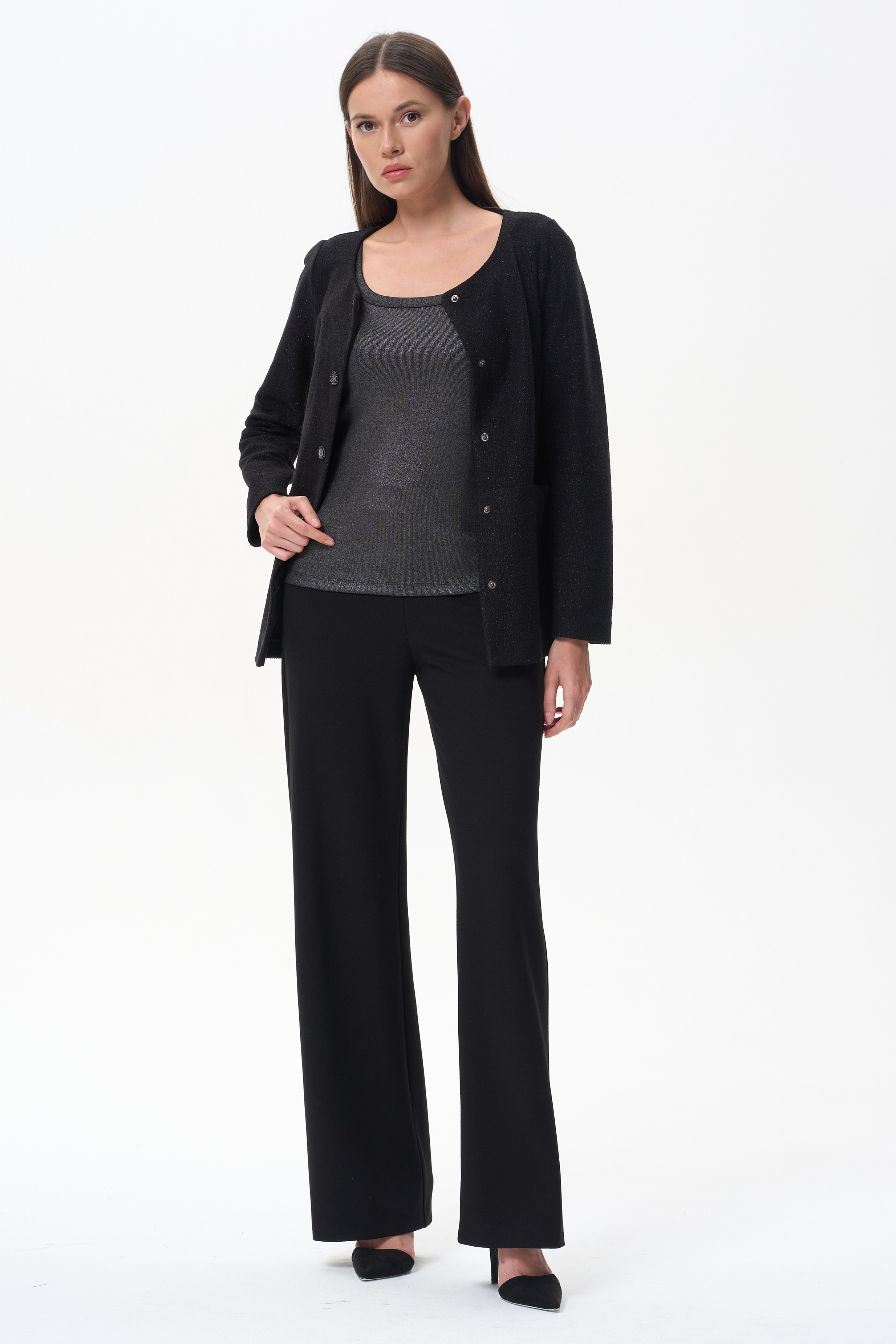 Нарядная майка из кашкорсе с серебристым покрытием. Удобные широкие бретели, комфортная посадка, блестящая поверхность для эффектных образов.