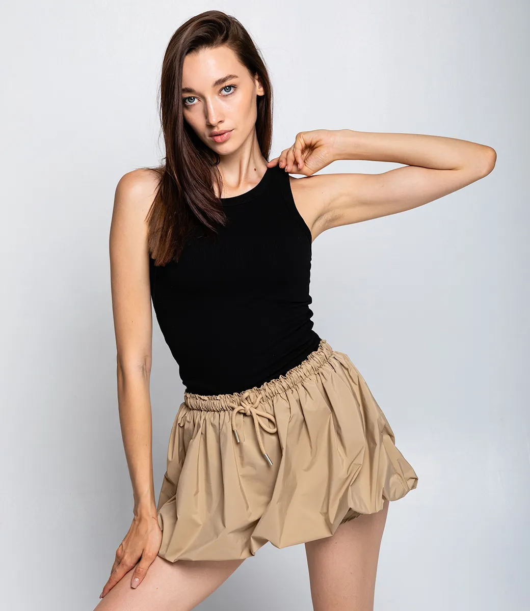 Майка является базовым элементом гардероба на каждый день. Данная модель благодаря высококачественному материалу приятна к телу и удобна в носке. Рост модели 168, 83-63-92.