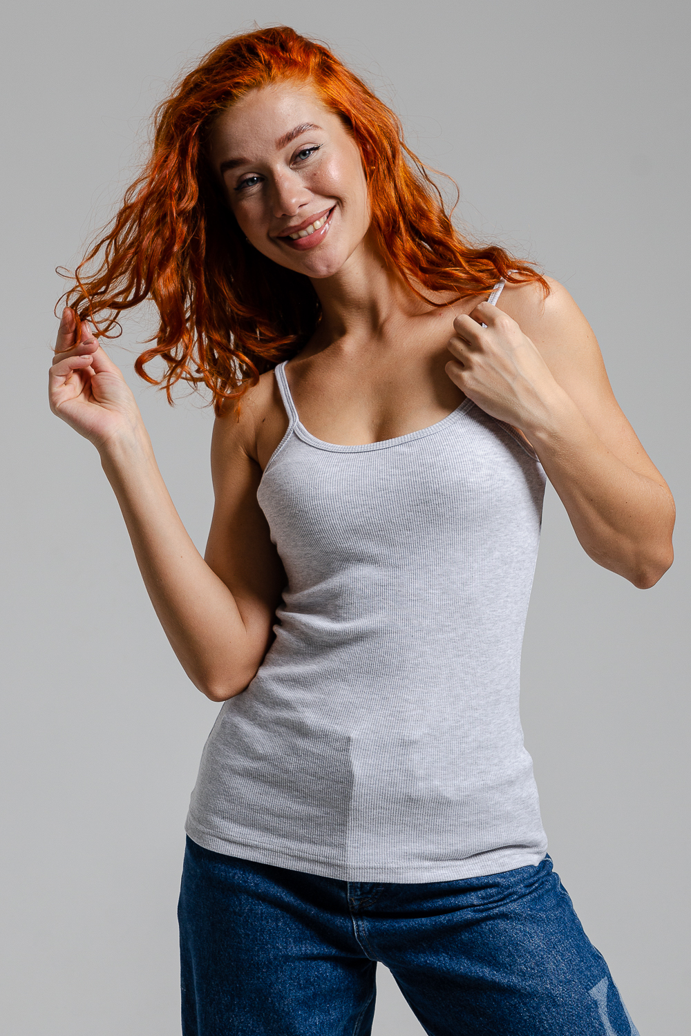 Трикотажная стильная майка из мягкого хлопка в рубчик. Содержит в себе хлопок и лайкру, изделия из такой ткани служат больше. Модная элегантная майка с квадратным вырезом идеально сочетается с джинсами жакетами и шортами. А небольшое количество эластана позволяет футболке сесть по фигуре.
