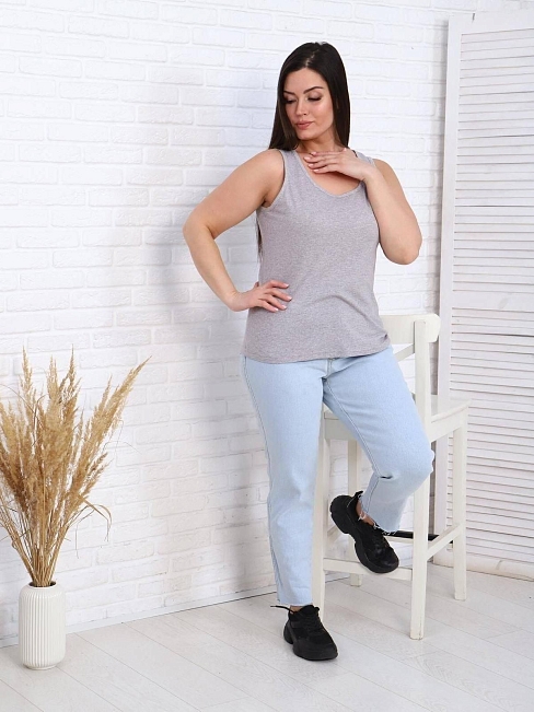 Женская майка Симфония уно из кулирки — идеальный выбор для комфортного повседневного образа. Базовые цвета обеспечивают универсальность, а мягкий материал и тонкий крой создают лёгкость и удобство.