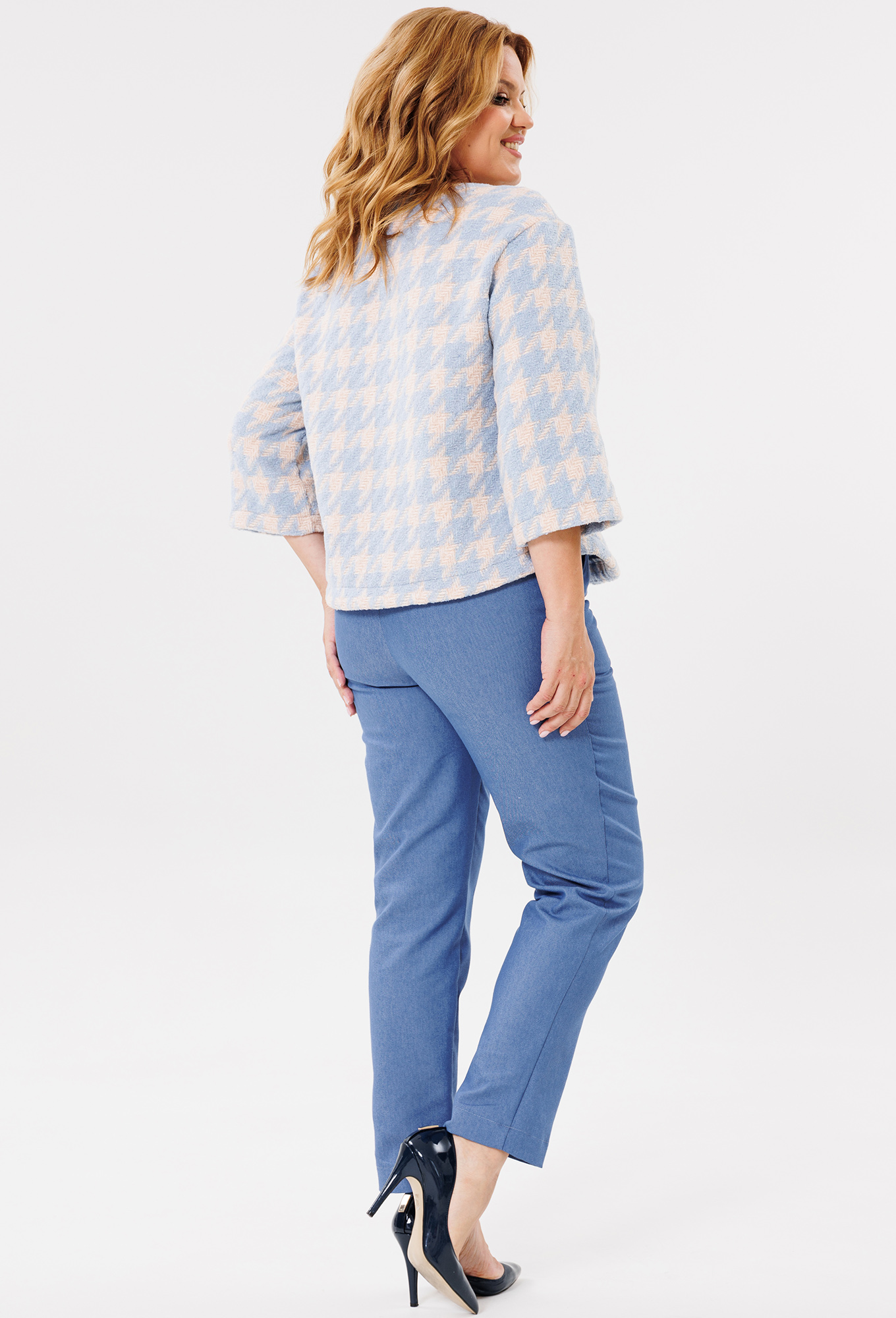 Удобный женский брючный комплект. Данный деловой комплект станет отличным выбором для офисных работников и всех, кто ценит комфорт и стиль. Изделие состоит из жакета и брюк. Твидовый жакет прямого полуприлегающего силуэта с втачным рукавом 3/4. По переду изделия накладные клапаны. Жакет на молнии не только функционален, но и добавляет стильный акцент в любой образ. Этот теплый твидовый жакет создан для повседневной носки и будет радовать вас мягкостью и комфортом, даже в самые холодные дни. Брюки выполнены из хлопковой ткани средней плотности садятся по фигуре длиной 7/8. К низу заужены, спереди на молнии с гульфиком, высокая посадка, на притачном поясе с резинкой по бокам, от пояса к боковым швам косые функциональные карманы. Благодаря своему элегантному дизайну, данный костюм plus size станет незаменимым элементом вашего гардероба и поможет создать множество образов.