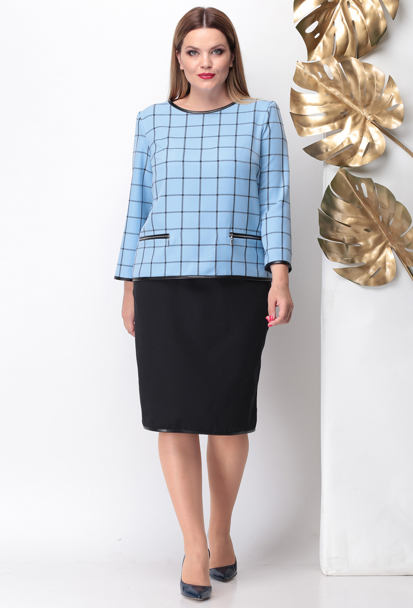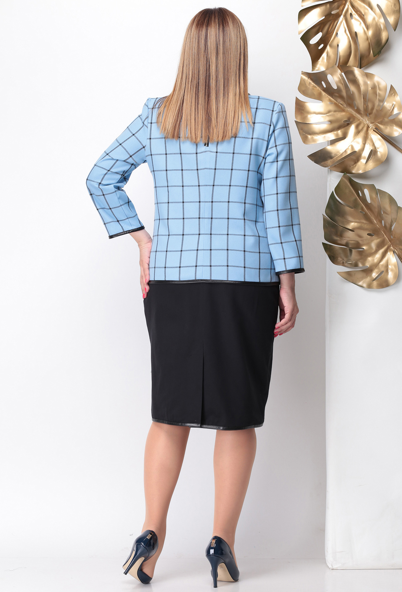 Классический юбочный костюм прекрасно впишется в каждодневный гардероб.Блуза выполнена из приятной на ощупь клетчатой ткани благодаря своему составу практически не мнется и легка в обслуживании. Горловина манжеты и низ изделия, как и подол юбки, обработаны кожаной отделкой. Карманы и застежка на спинке на металлических шлифованных молниях имеющих мягкий ход. В юбке сзади также открытая молния в комплект верхнему изделию. Пояс частично на резинке, украшением служат и косые карманы. длина изделия 64см+-1см. Длина блузы по среднему шву спинки 58см+-1см, длина рукава 52см+-2см