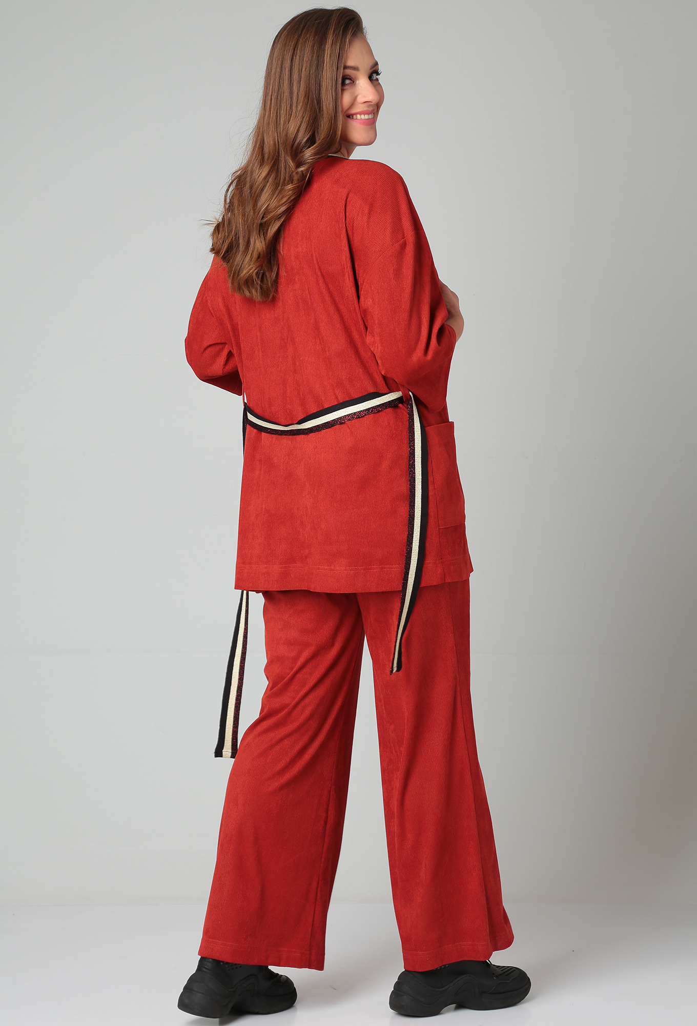 Классный комфортный костюм-кимоно в повседневном стиле, выполнен из струящегося трикотажа в рубчик с односторонним ворсом. Кардиган на запах с поясом свободного кроя, с широким спущенным рукавом и накладными карманами. Рукав три четверти. Брюки палаццо — свободного кроя, высокой посадки, имеют карманы. Оба изделия отличаются своей функциональностью, их можно с легкостью комбинировать с другими вещами Вашего гардероба. Длина джемпера по спинке 75 (+/-1) см, длина рукава от горловины 57 см. Длина брюк по боковому шву 105 см, по шаговому 76 см.