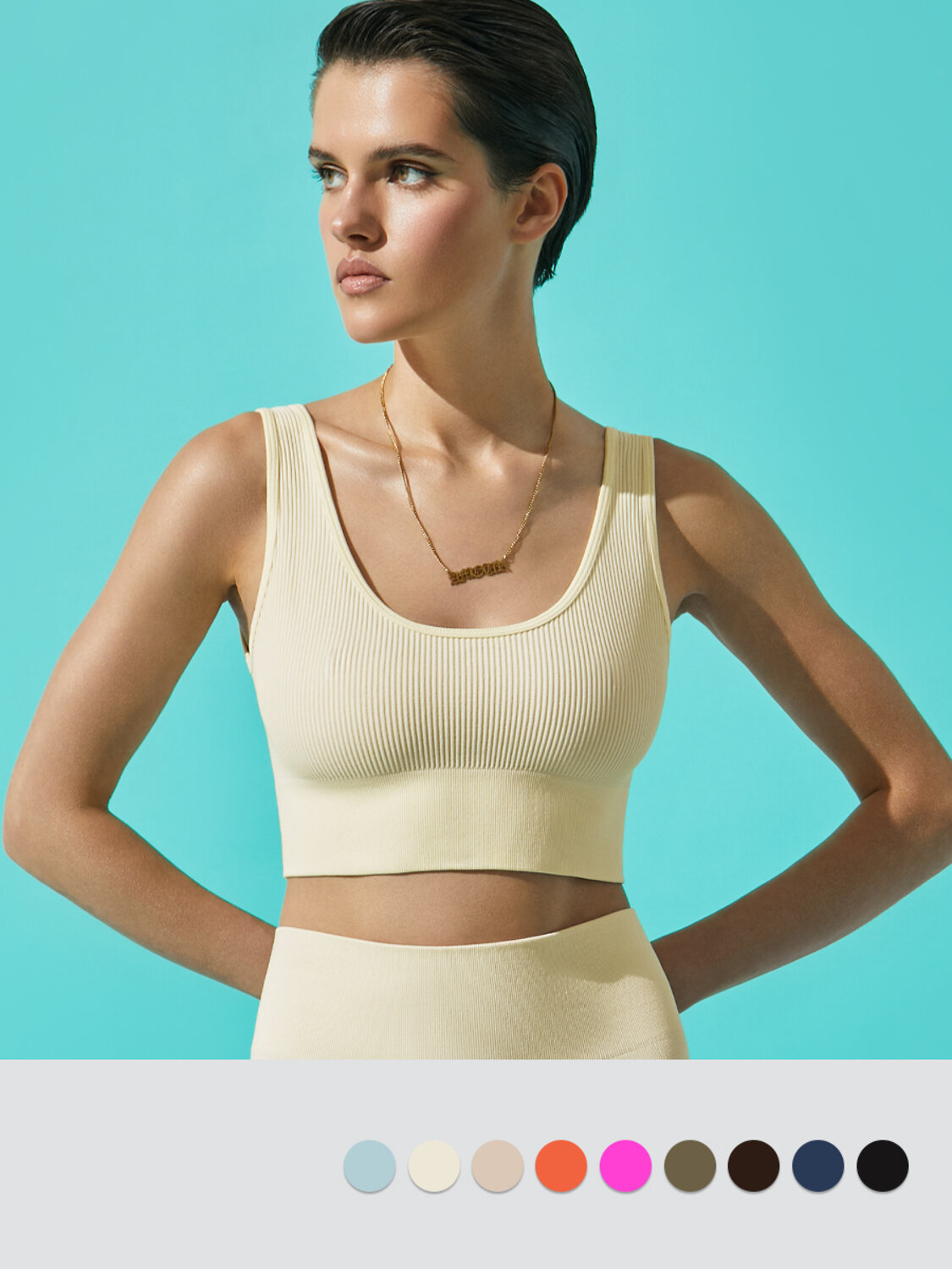 Благодаря трендовому дизайну и актуальной палитре оттенков стильный и практичный топ превосходно подойдет и для активных тренировок, и для создания повседневных образов.