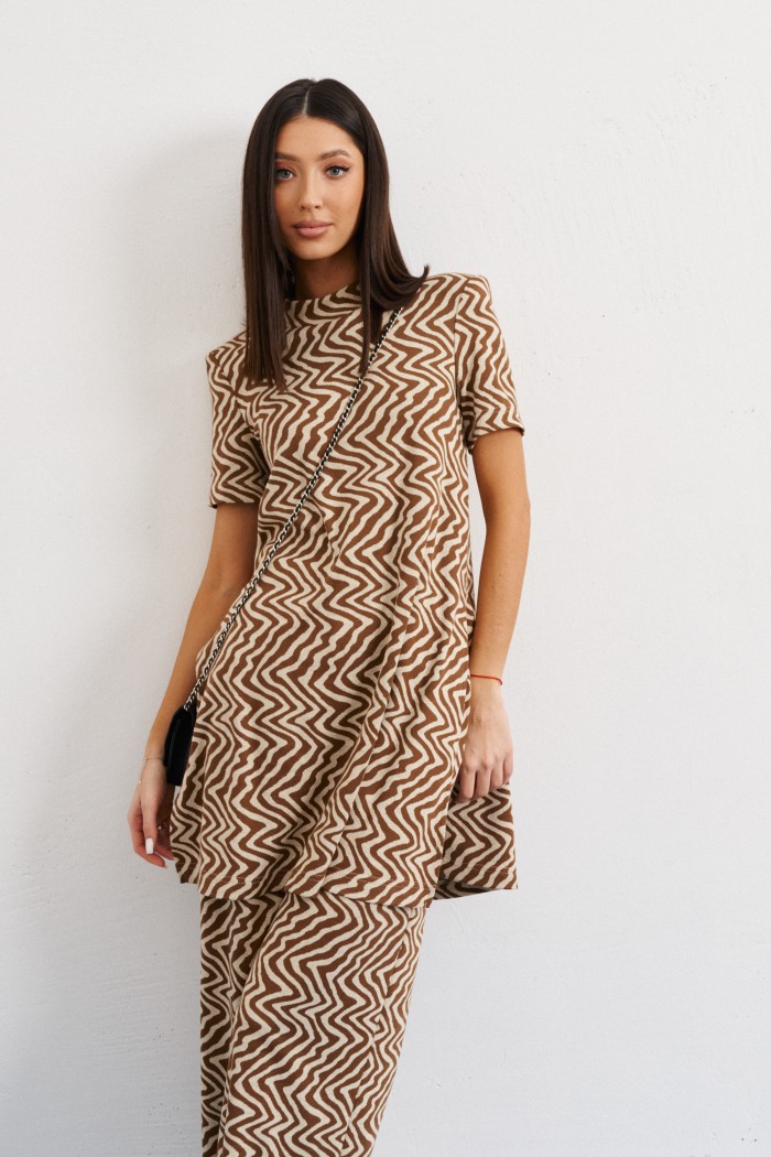 Комфортный комплект состоит из удлиненного джемпера и кюлот выполнен из трикотажного полотна с абстрактным принтом.