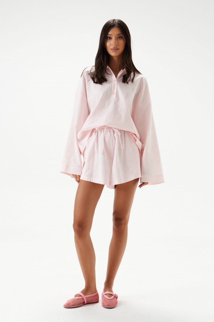 Рубашка-поло. Выполнен из натурального полотна - лен. Прямой крой. Отложной воротник. Застёжка – пуговички. Рукав втачной, спущен.  Длина рукава от края горловины 75 см. Длина спинки 60 см