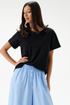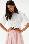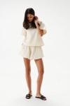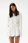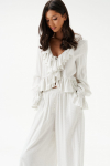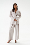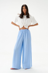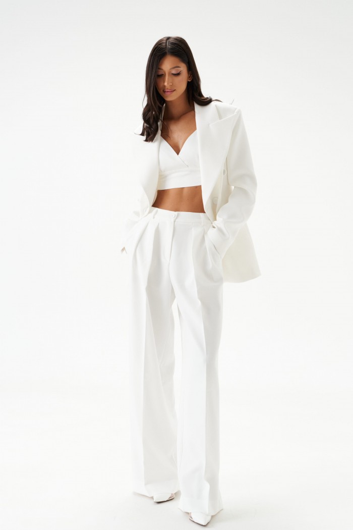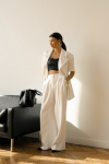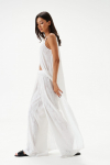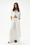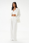 Брюки прямого свободного кроя выполнены из полотна белого цвета. Стильный базовый элемент гардероба.