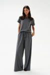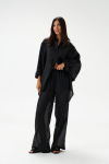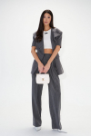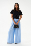 Характеристики: прямой крой, пояс стабильный, по поясу нашиты шлевки, декоративная сборка по передней части, заутюженные стрелки по передней и задней части брюк. Длина изделия 112 см