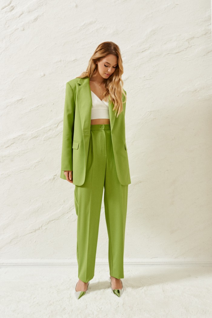 Брюки прямого кроя выполнены из легкой костюмной ткани.