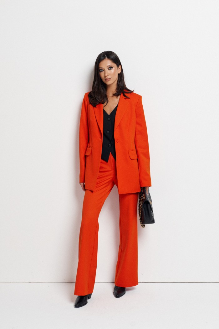 Брюки полуприлегающего силуэта выполнены из костюмной ткани.