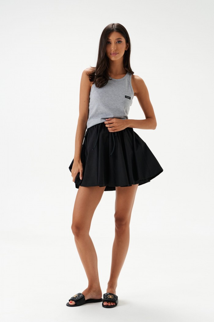 Топ прилегающего силуэта. Выполнен из трикотажного полотна серого цвета. Горловина круглая.Брендированная нашивка на линии груди. Длина спинки 57 см.