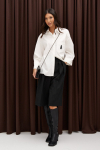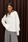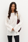 Джемпер выполнен из полупрозрачного полотна белого цвета.