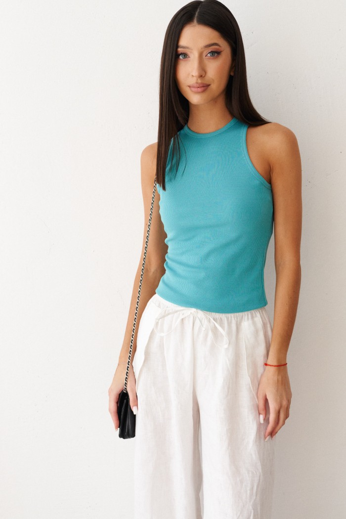 Топ прилегающего силуэта выполнен из фактурного полотна.