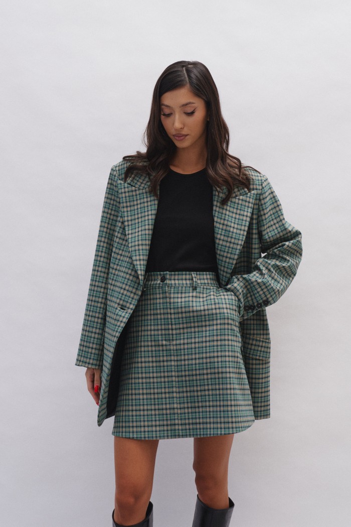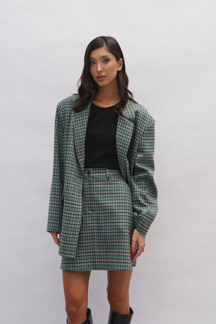 Юбка полуприлегающего силуэта выполнена из полотна с геометрическим принтом.
