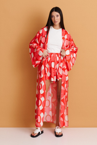 Стильный жакет кроя выполнен из полотна с контрастным принтом.