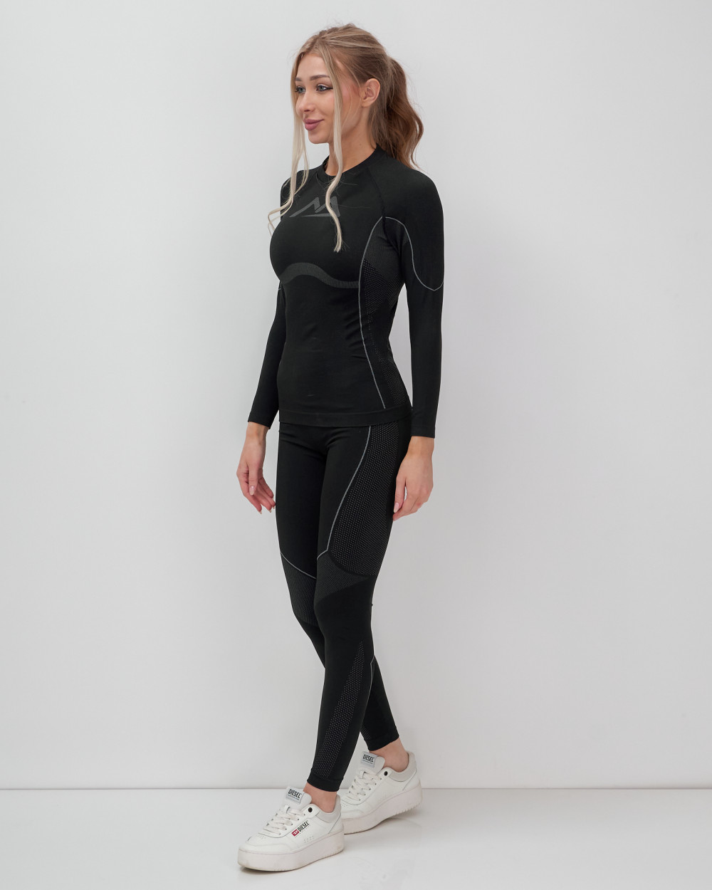 Представляем вашему вниманию комплект женского термобелья из коллекции осень-зима 2025, созданный для активных и стильных женщин, которые ценят комфорт и эстетику. Этот комплект включает в себя лонгслив и леггинсы, выполненные из высококачественных материалов: 90% полиэстера и 10% эластана.