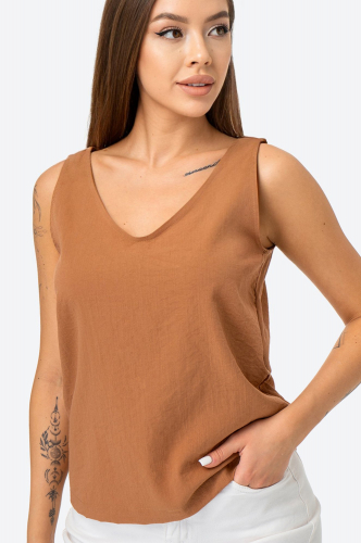 Легкая, как дуновение ветерка! Летняя ..показатьженская блузка выполнена из тонкой ткани с добавлением вискозы. Базовая модель прямого кроя, без рукава. V-образный вырез деликатно открывает грудь.