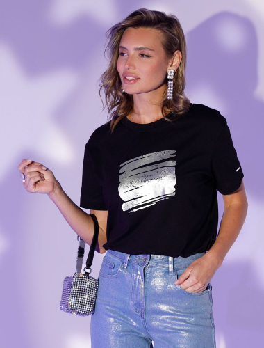 Эта эффектная футболка станет отличным выбором на праздник, подчеркивая образ сияющей и уверенной в себе девушки или женщины. Если вы ищете комфортный и одновременно привлекательный наряд для особых моментов, эта футболка станет надежным решением, подчеркивающим вашу индивидуальность и вкус.