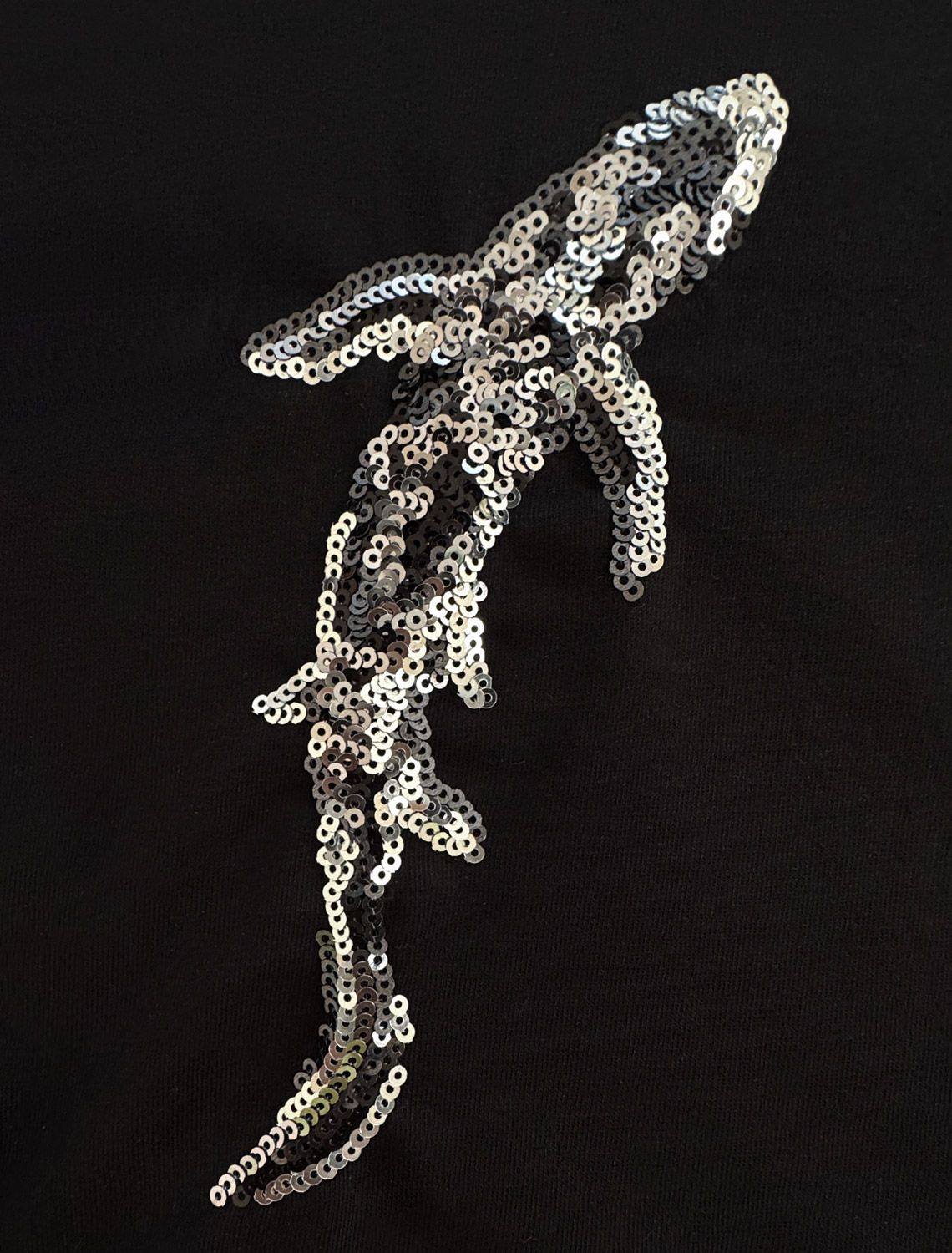 Стильная базовая футболка черного цвета с принтом пайетками в виде рыбки выполнена из плотного хлопка с эластаном для комфортной посадки на любую фигуру. Прямая футболка классического кроя с круглым вырезом, прекрасно подходит для разных типов фигуры, в том числе и на большие размеры. Мягкость хлопка вместе с небольшой долей эластана гарантирует идеальную посадку и свободу движений. Легкая натуральная дышащая ткань премиального качества делает футболку с коротким рукавом идеальным вариантом для повседневной носки дома, на работу или офис. Однотонная футболка дополнена авторским аккуратным принтом зебра, который придает праздничный и элегантный вид без лишней вычурности. Блестящий анималистичный принт аккуратно украшает, добавляя изысканный акцент и создавая легкий мерцающий эффект.