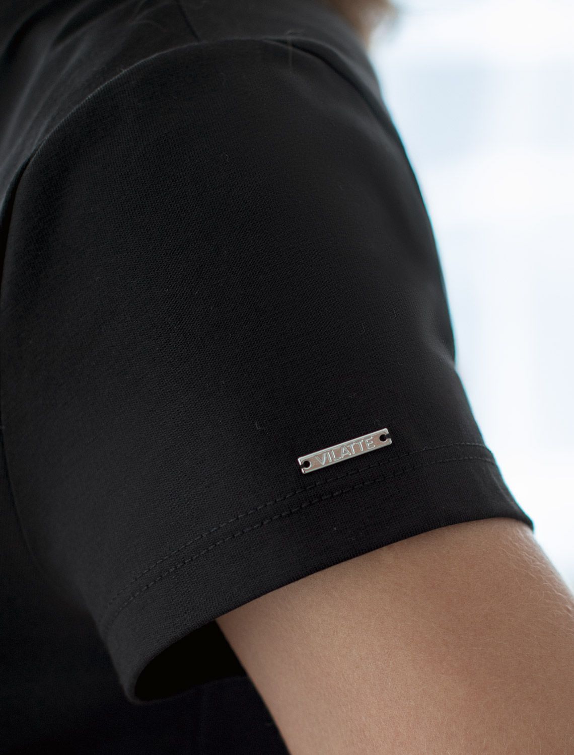 Стильная базовая футболка черного цвета с серебристым принтом пайетками выполнена из плотного хлопка с эластаном для комфортной посадки на любую фигуру. Прямая футболка классического кроя с круглым вырезом, прекрасно подходит для разных типов фигуры, в том числе и на большие размеры. Мягкость хлопка вместе с небольшой долей эластана гарантирует идеальную посадку и свободу движений. Легкая натуральная дышащая ткань премиального качества делает футболку с коротким рукавом идеальным вариантом для повседневной носки дома, на работу или офис. Однотонная футболка дополнена авторским аккуратным принтом, который придает праздничный и элегантный вид без лишней вычурности. Блестящий принт аккуратно украшает, добавляя изысканный акцент и создавая легкий мерцающий эффект.