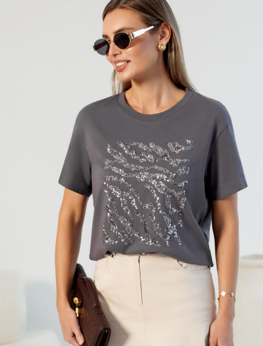Эта эффектная футболка станет отличным выбором на праздник, подчеркивая образ сияющей и уверенной в себе девушки или женщины. Если вы ищете комфортный и одновременно привлекательный наряд для особых моментов, эта футболка станет надежным решением, подчеркивающим вашу индивидуальность и вкус.