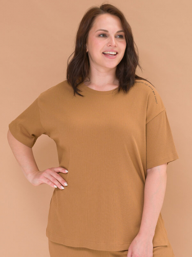 Халат с застежкой на петли и пуговицы, полуприлегающего силуэта, длиной ниже колена, с V-образной горловиной, с фигурными накладными карманами. Рукав втачной, короткий, с декоративными защипами, на манжете. Полочки с кокетками и декоративными защипами. В нижней части боковых швов обработаны разрезы. Горловина спинки и отделочные элементы карманов обработаны бейкой из основного полотна.
