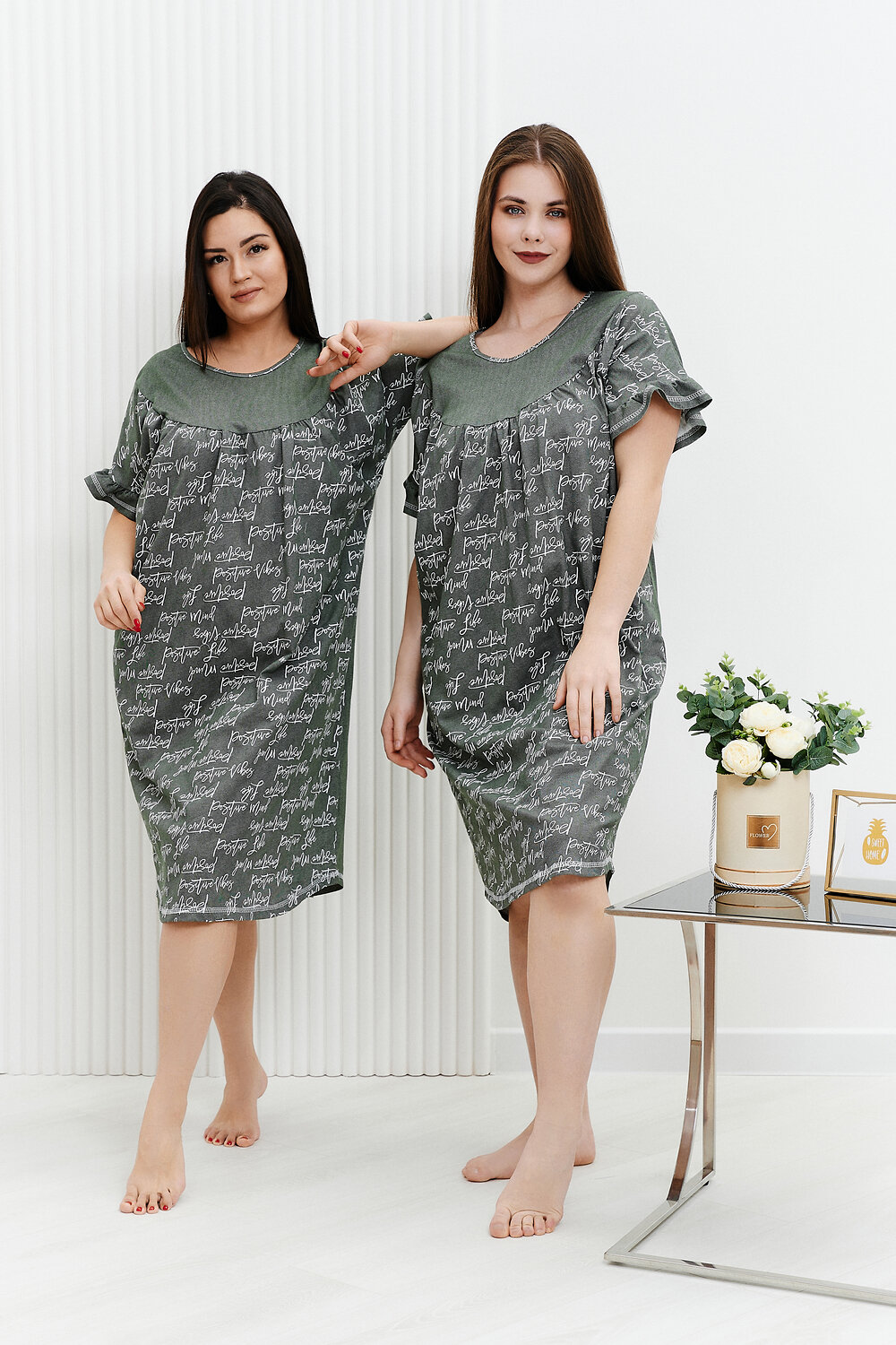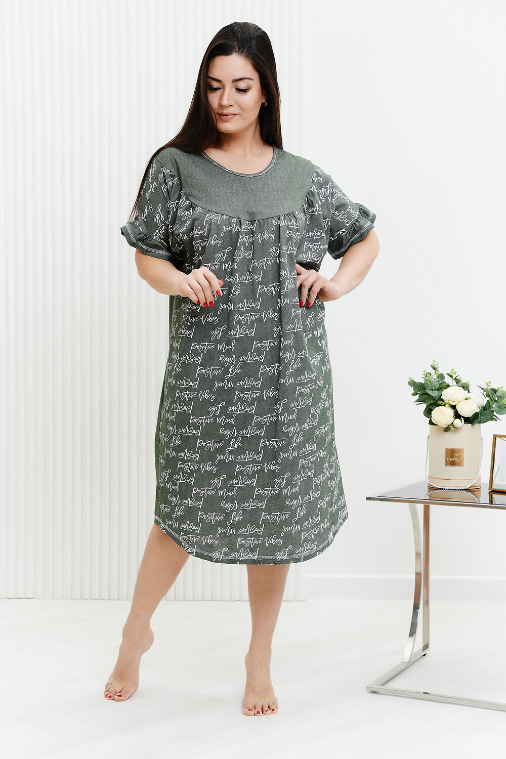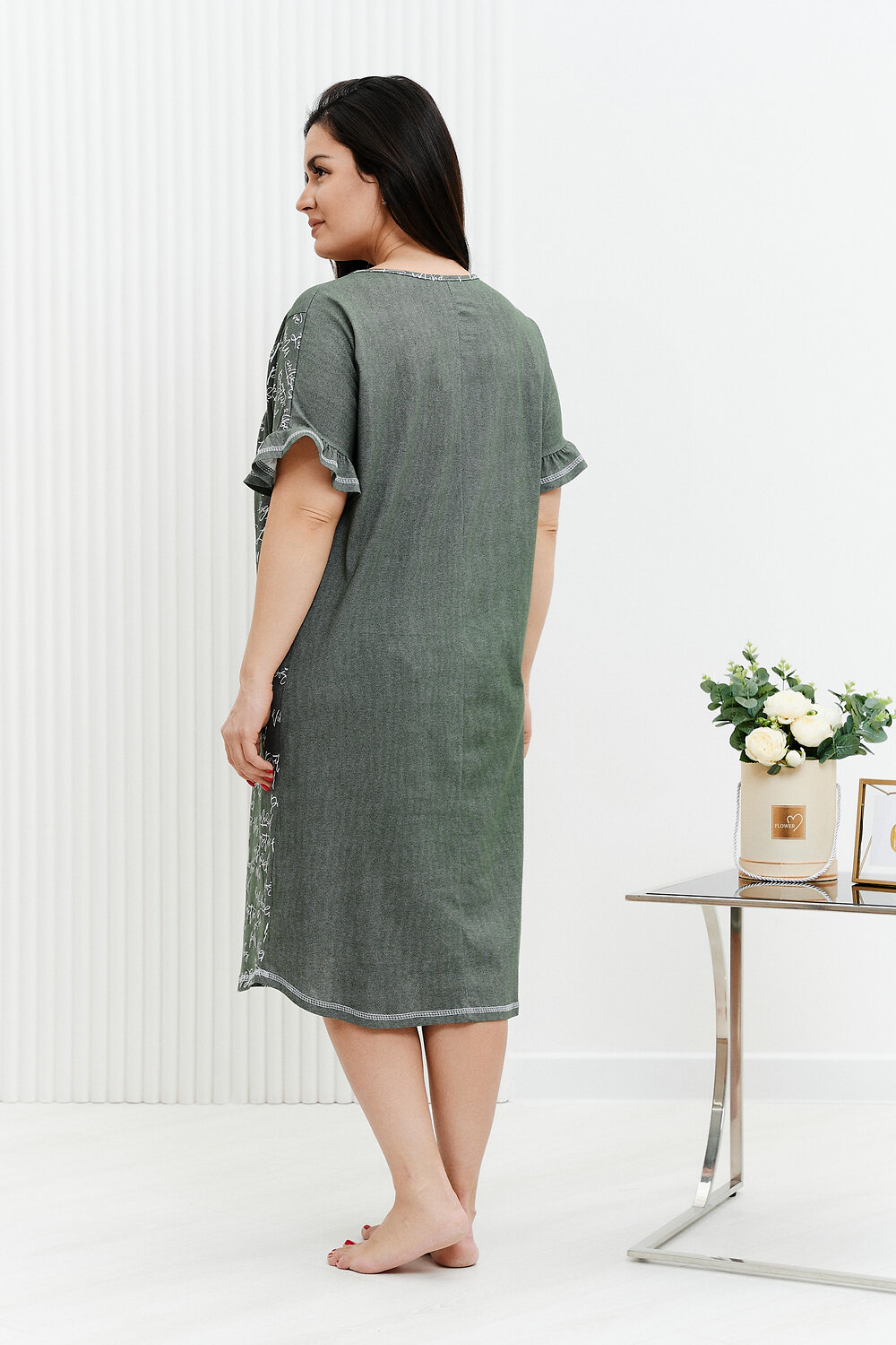 Сорочка женская, прямого силуэта, рукав короткий цельнокроенный с рюшей, горловина округлая. На полочке кокетка. Сборка верхней части полочки по линии притачивания кокетки обеспечивает изделию достаточную свободу и комфорт.