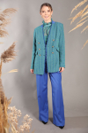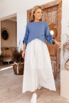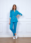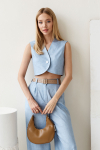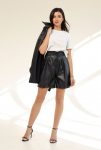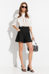 Шорты  выполнены из  плотного джинсового хлопка. Изделие   на поясе, частично вставлена резинка.  Спереди - фигурные карманы и односторонние глубокие складки. Сзади накладные карманы. Шорты средней посадки великолепно садятся на любую фигуру.