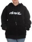 Капюшон несъемный, однослойный с регулировочным шнурком.