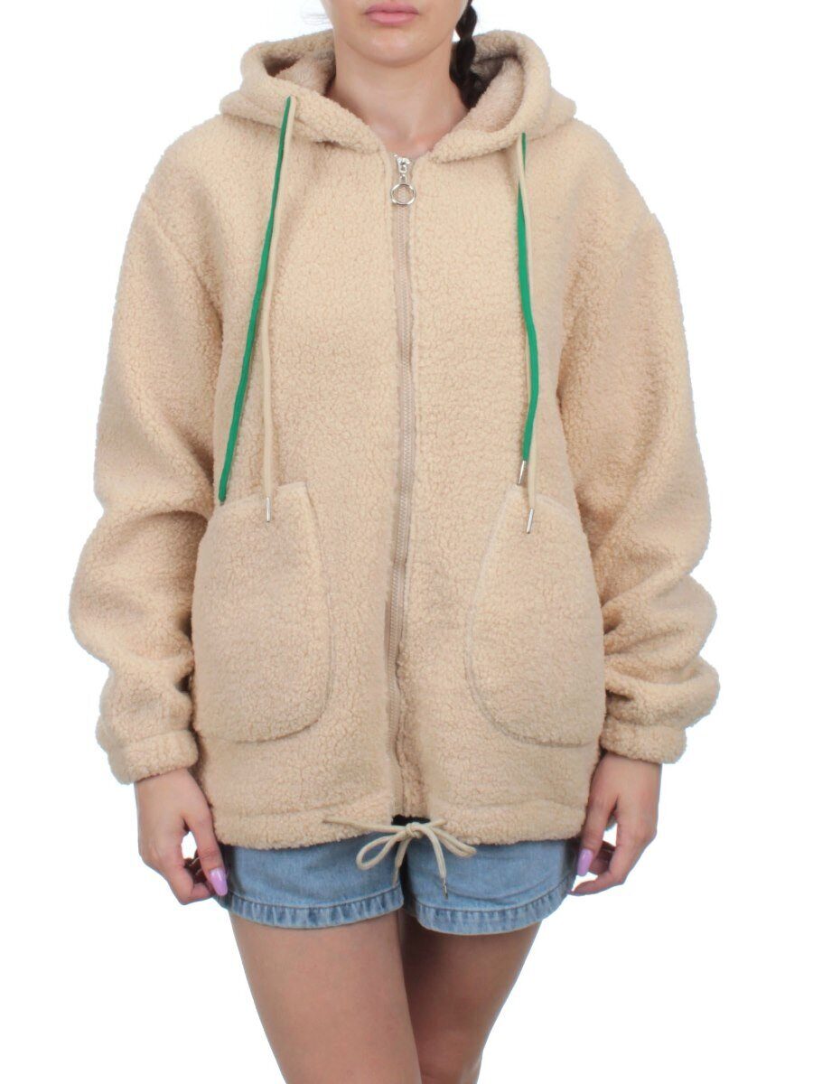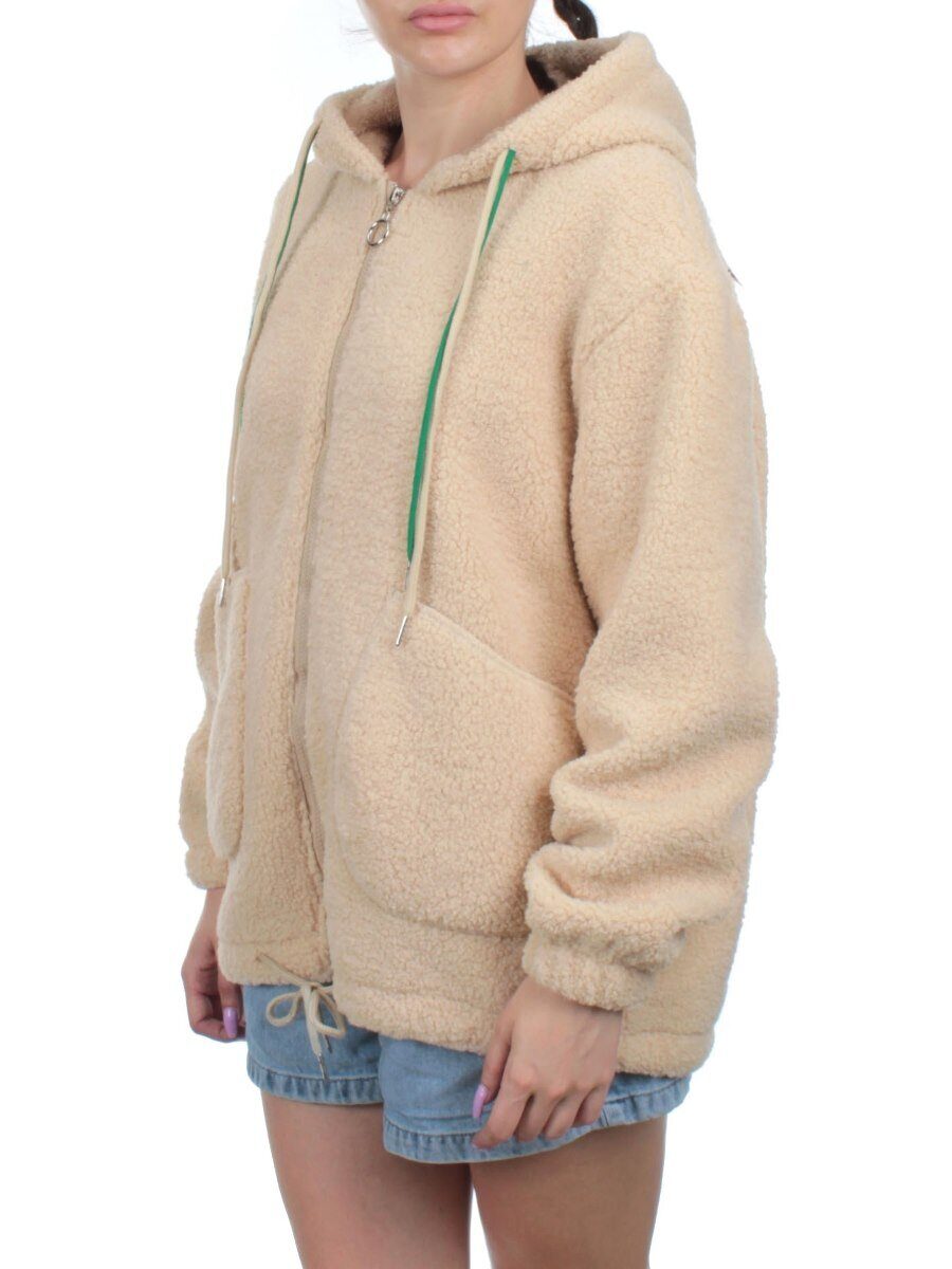 1003 BEIGE Куртка плюшевая демисезонная (65% хлопок, 35% полиэстер) оверсайз 44-54