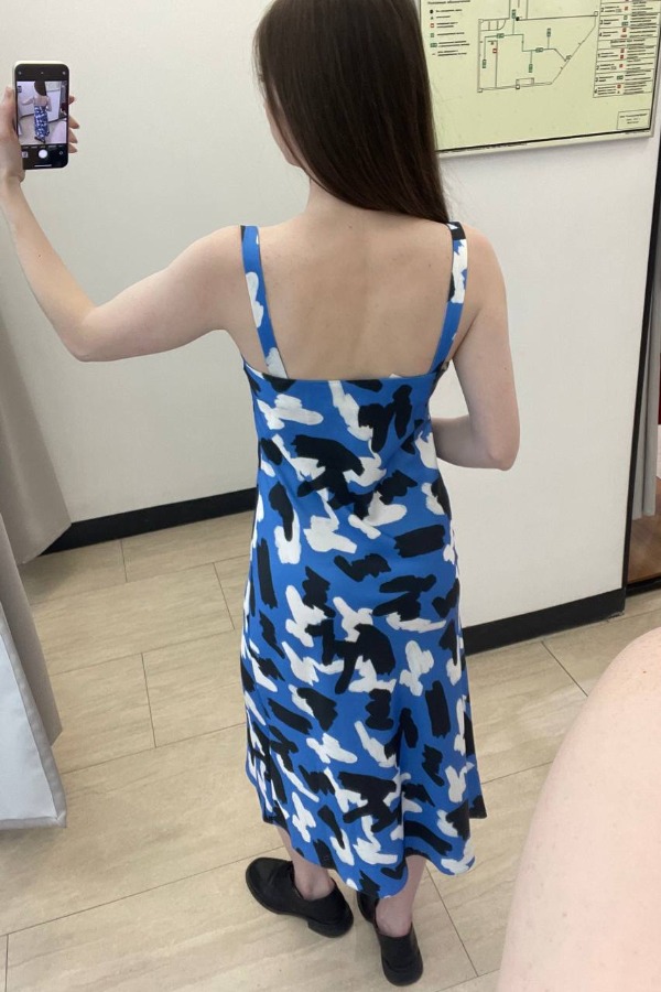 Платье с «качелями» в зоне декольте смотрится очень женственно. Изделие на бретелях полуприлегающего силуэта, расширенное книзу из атласной плательной ткани.